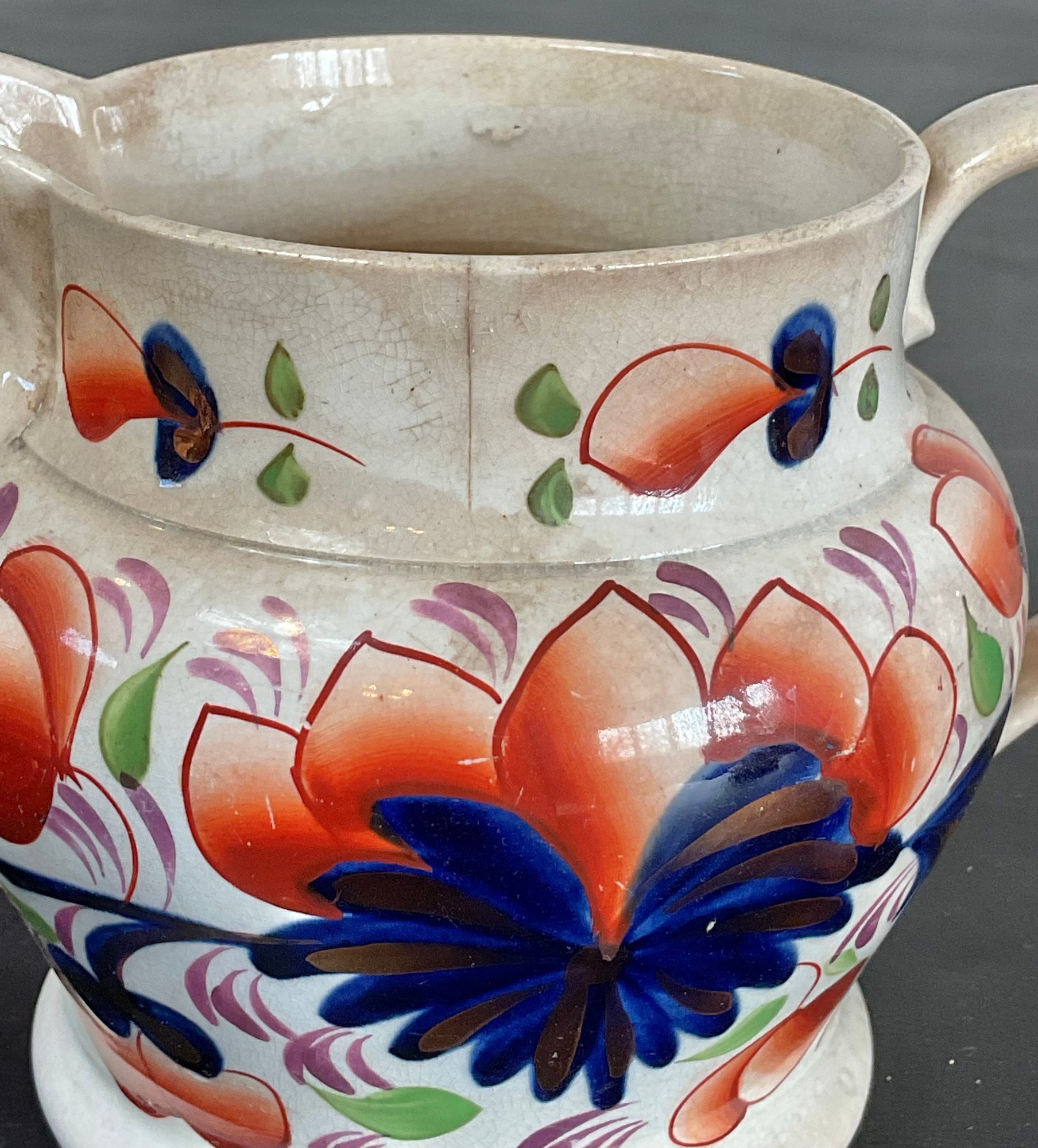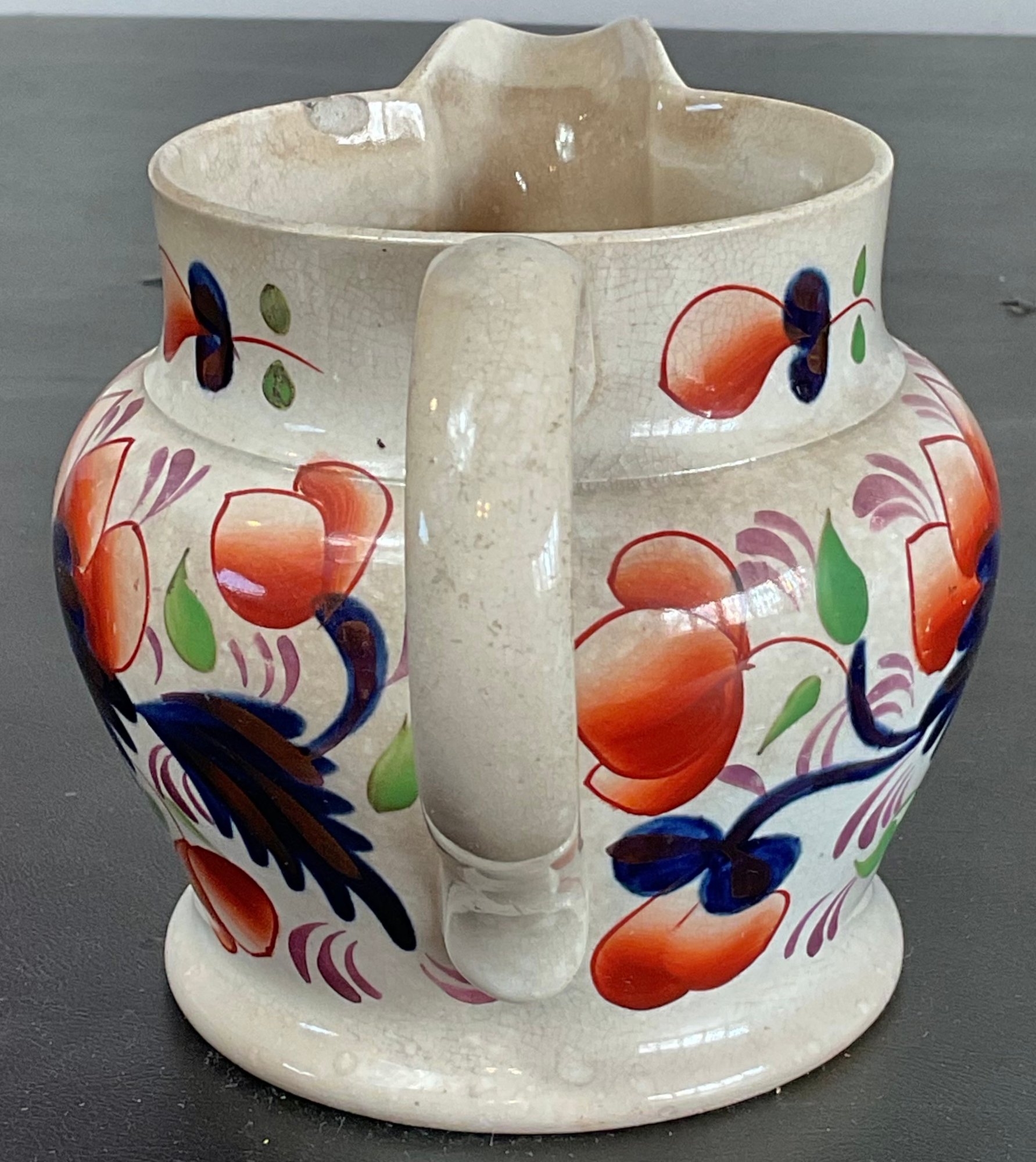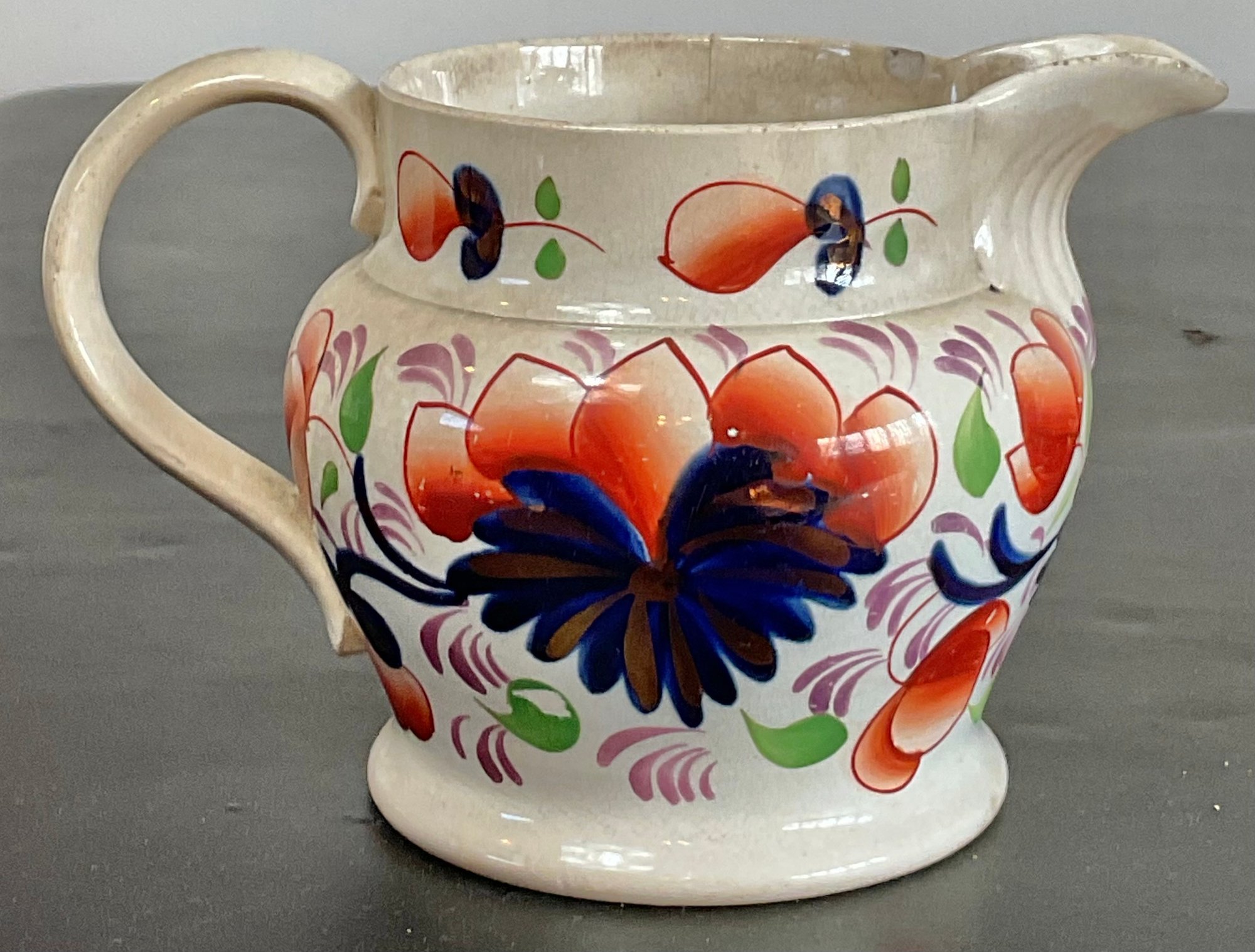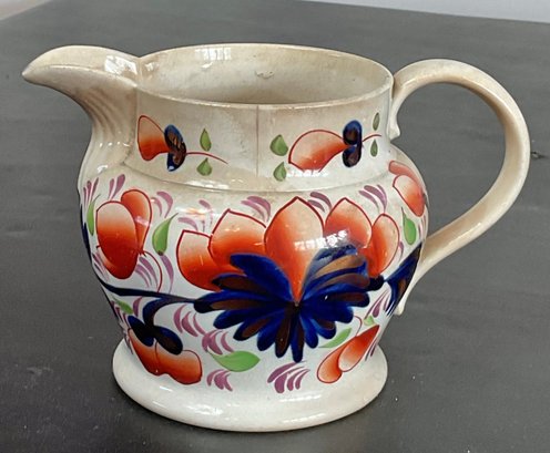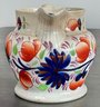 Antique Gaudy Welsh Pottery Jug - small chip & crack - 4.5” tall x 6.75” long x 4 5/8” wide - good condition for age