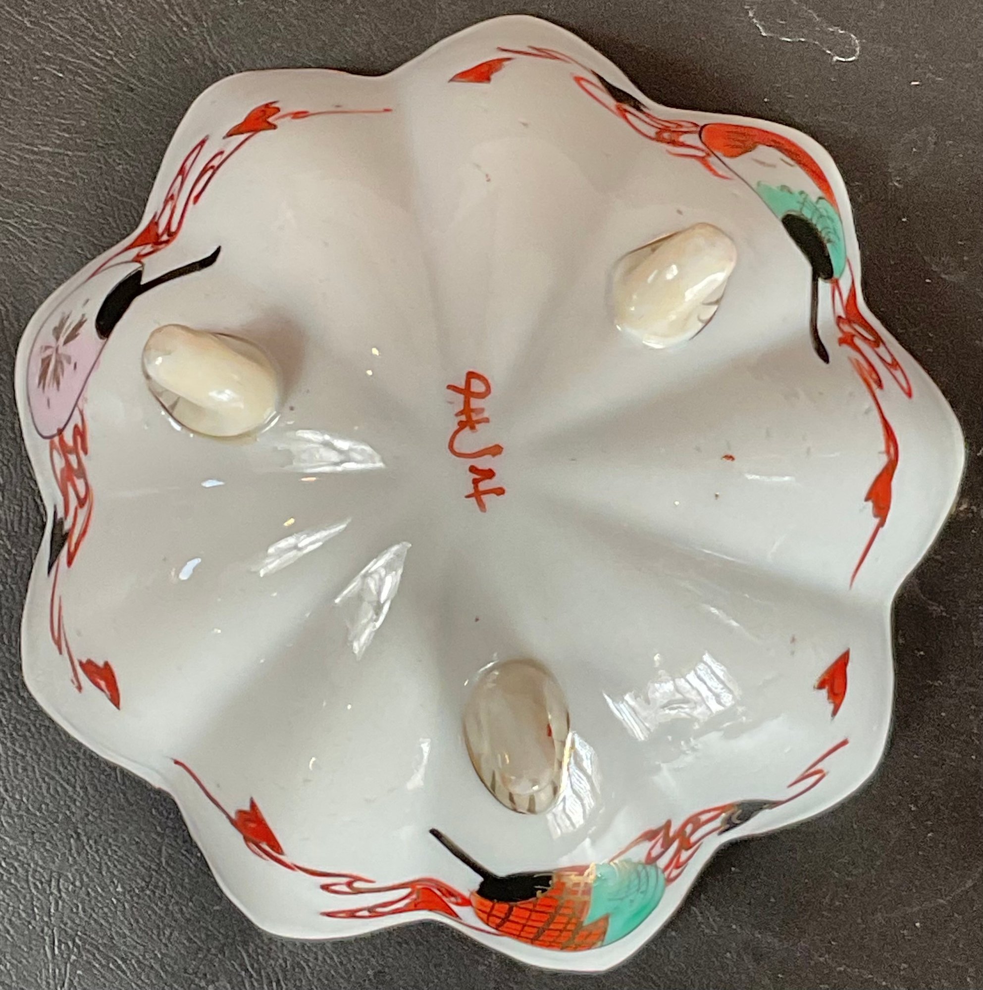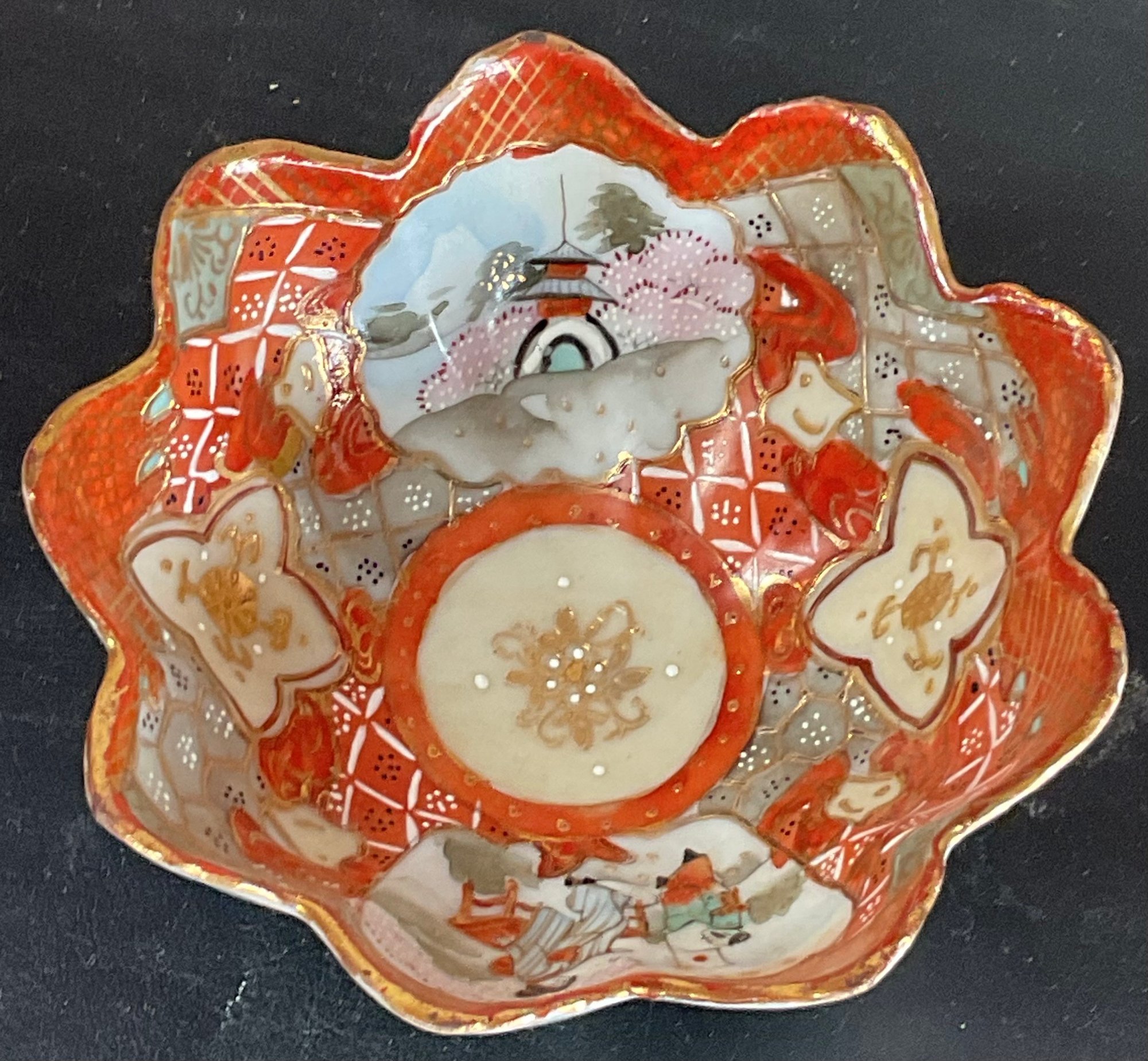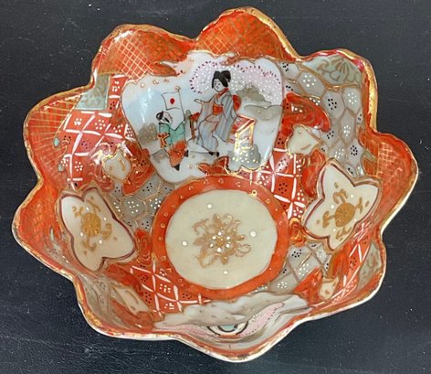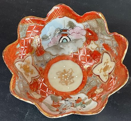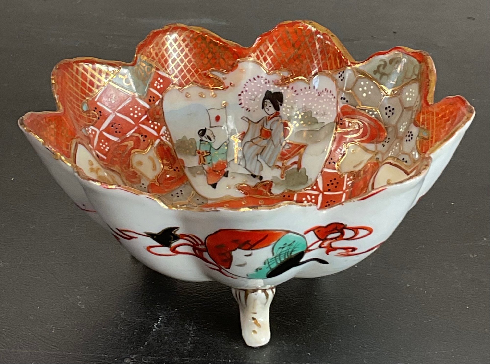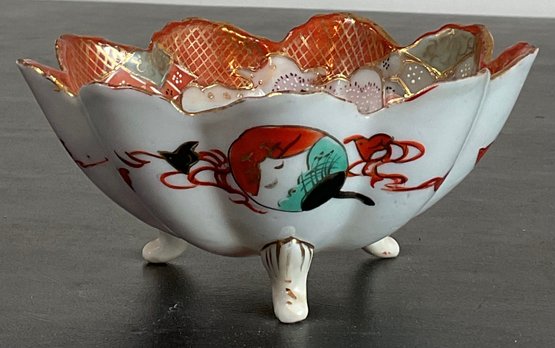 Antique Japanese Kutani Porcelain Three Footed Bowl - no chips - 2 3/8” tall x 5” wide - good used condition