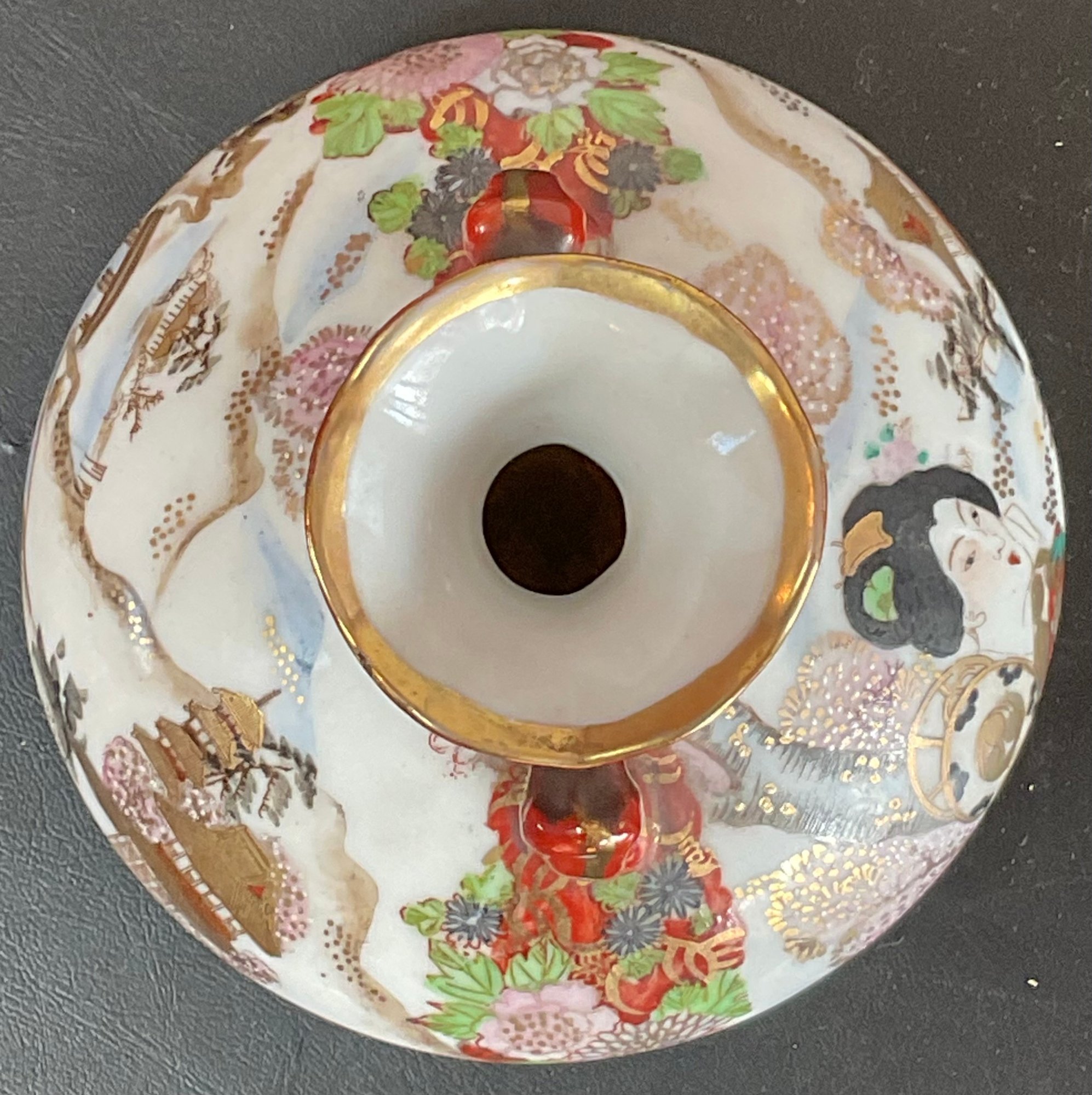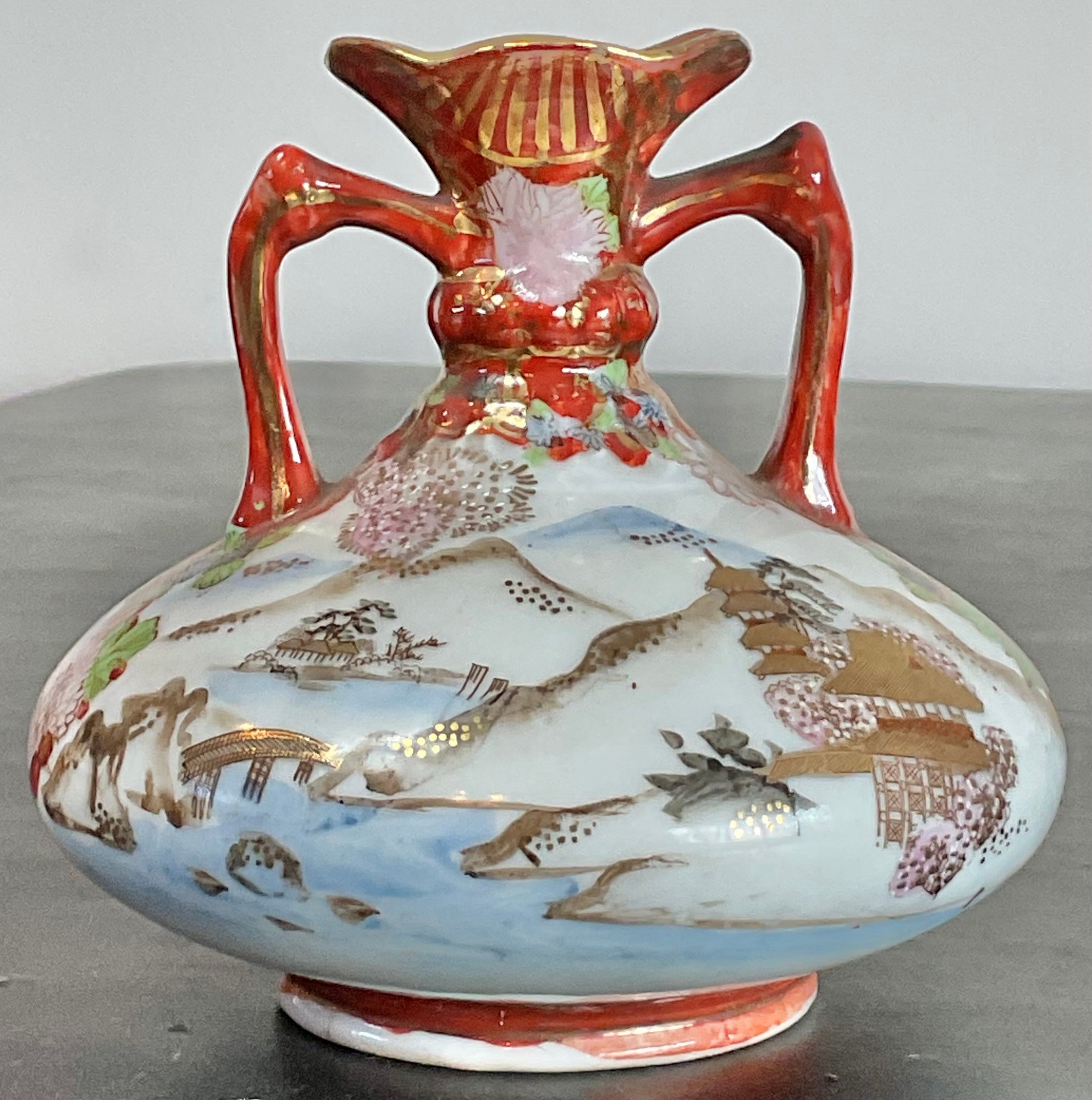 Antique Japanese Kutani Porcelain Vase - Geisha - no chips - 5” tall x 5.25” wide - good used condition
