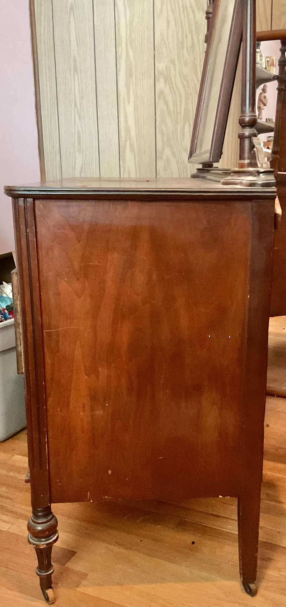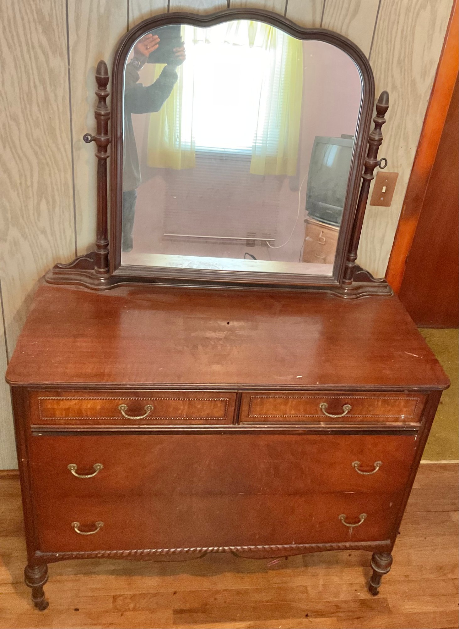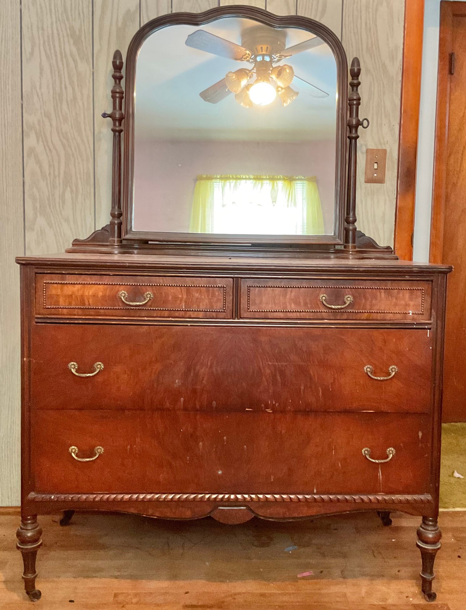 Antique Mahogany Dresser W/ Mirror - 67” tall (with mirror) 35.5” without - 44” long x 20” wide - good used condition