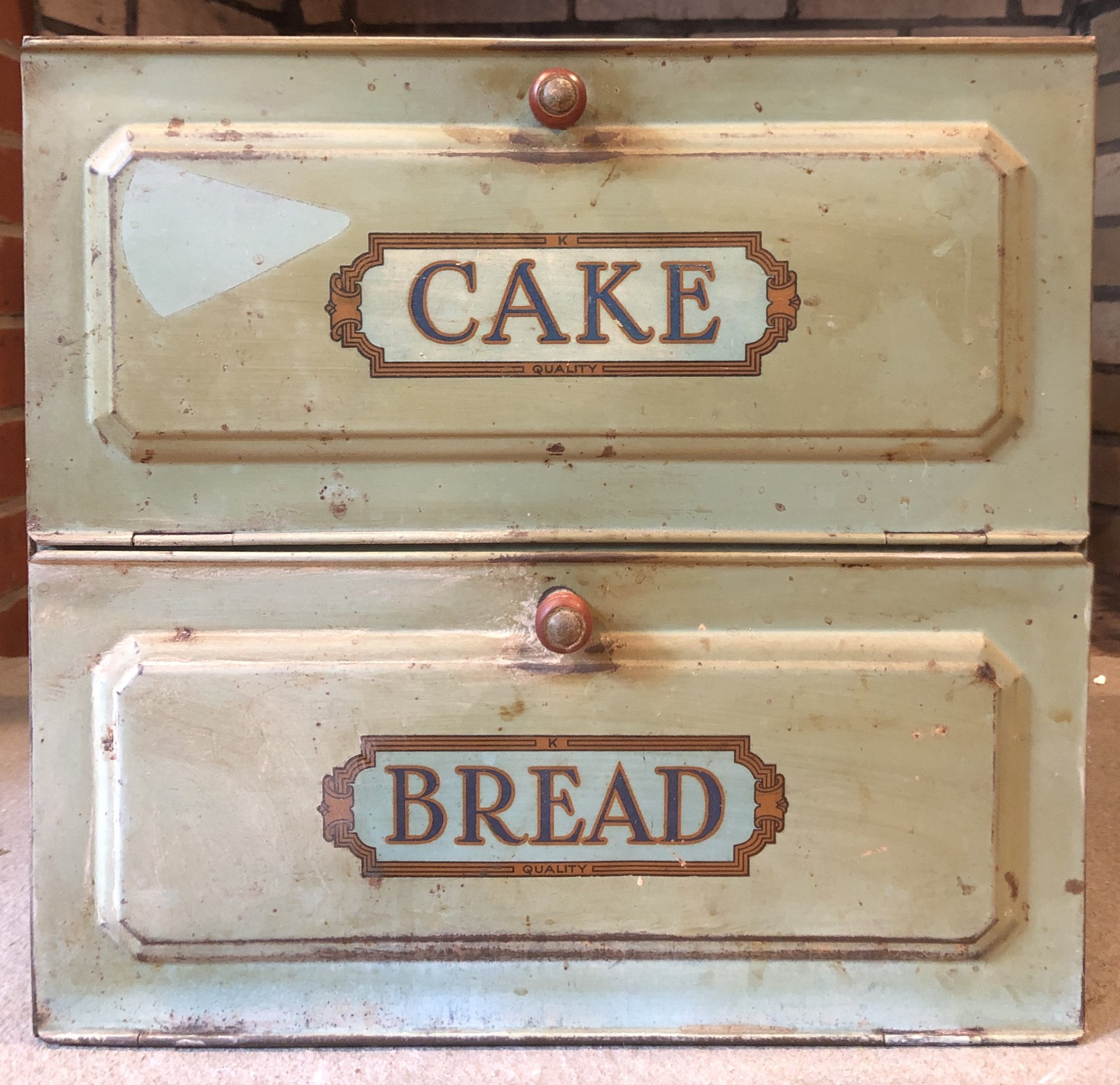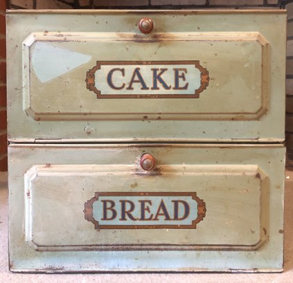 Antique Metal Cake & Bread Box - 13 1/8" tall x 13 7/8" long x 10.75" wide - good used condition