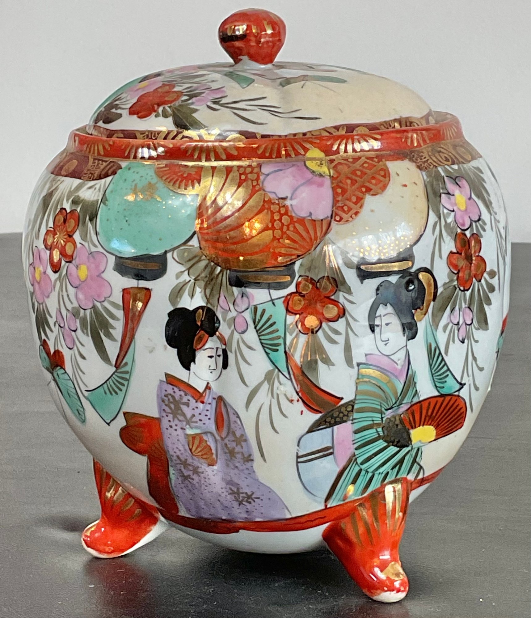 Antique Tashiro Japanese Porcelain Jar W/ Lid - Geisha - no chips - 6.5” tall x 5.75” round - good used condition