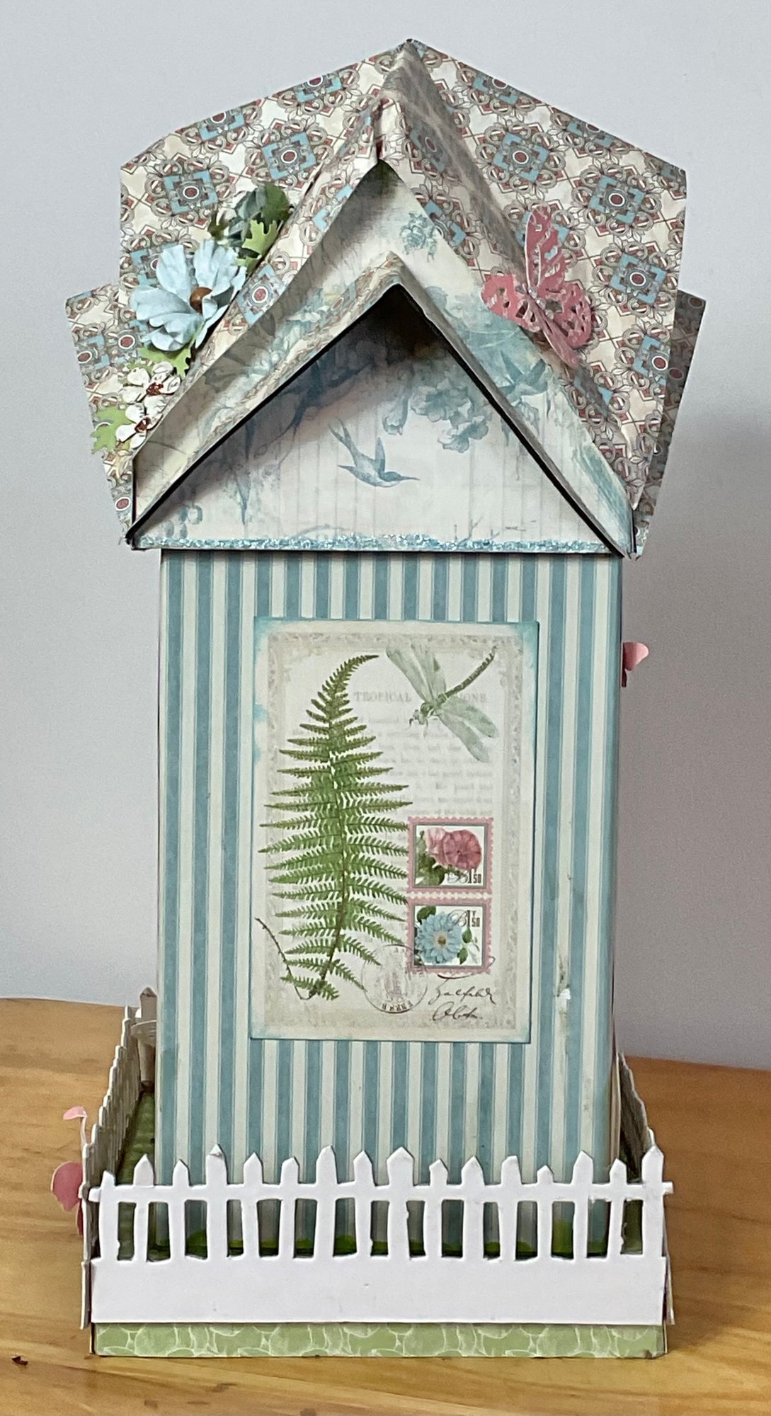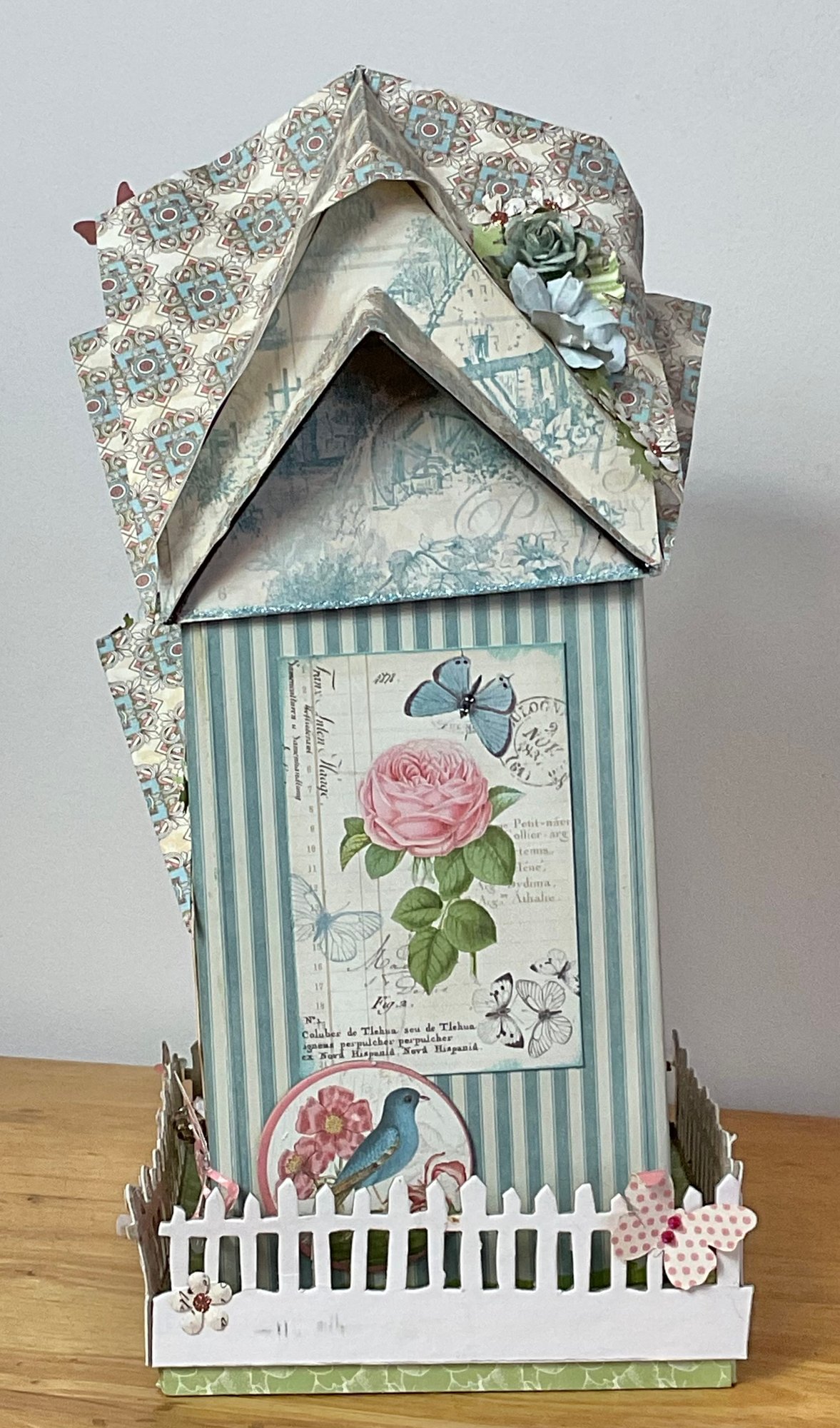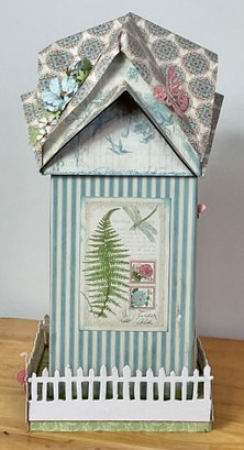 Paper Craft Birdhouse W/ 5 Cards - 12” tall x 6.25” long x 6” wide - good used condition