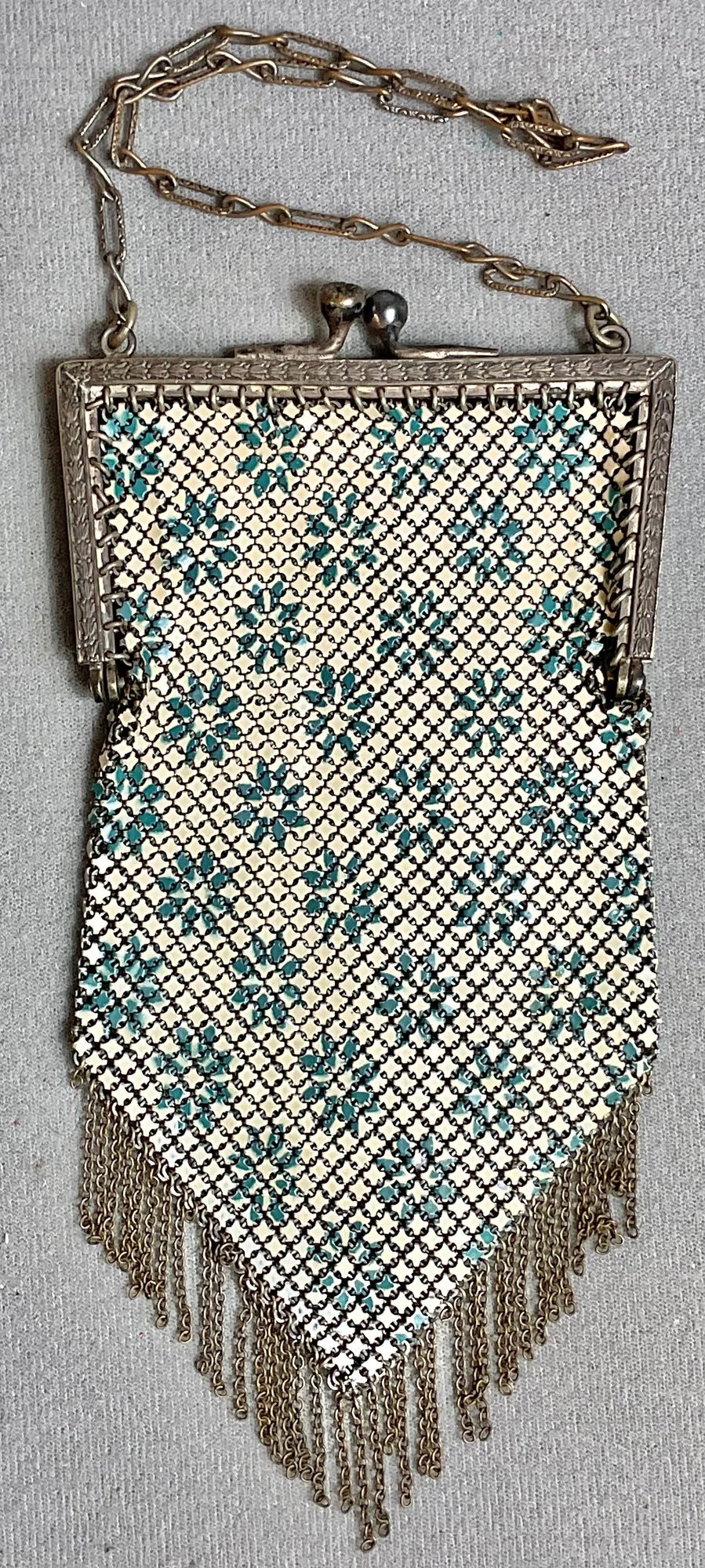 Art Deco Mandalian Enamel Mesh Purse - 7” long x 3.5” wide - good used condition