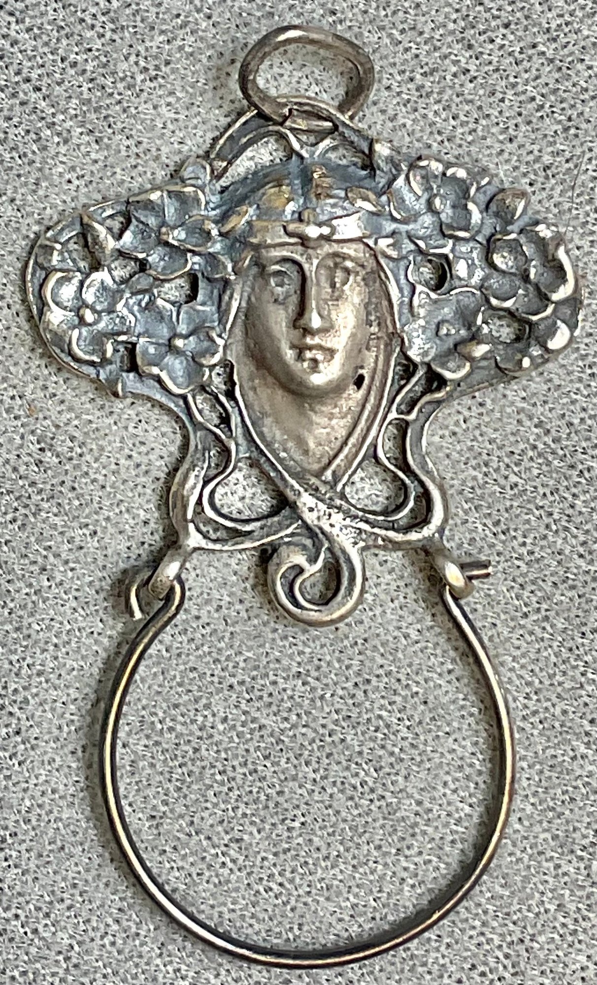 Art Nouveau Sterling Charm Holder Pendant - 1 7/8” long x 1.25” wide - weighs 4.6 grams - good used condition