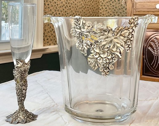 Arthur Court Design Ice Bucket & Champagne Flute - no chips - ice bucket 7 7/8” tall - flute 8 7/8” tall - good used condition