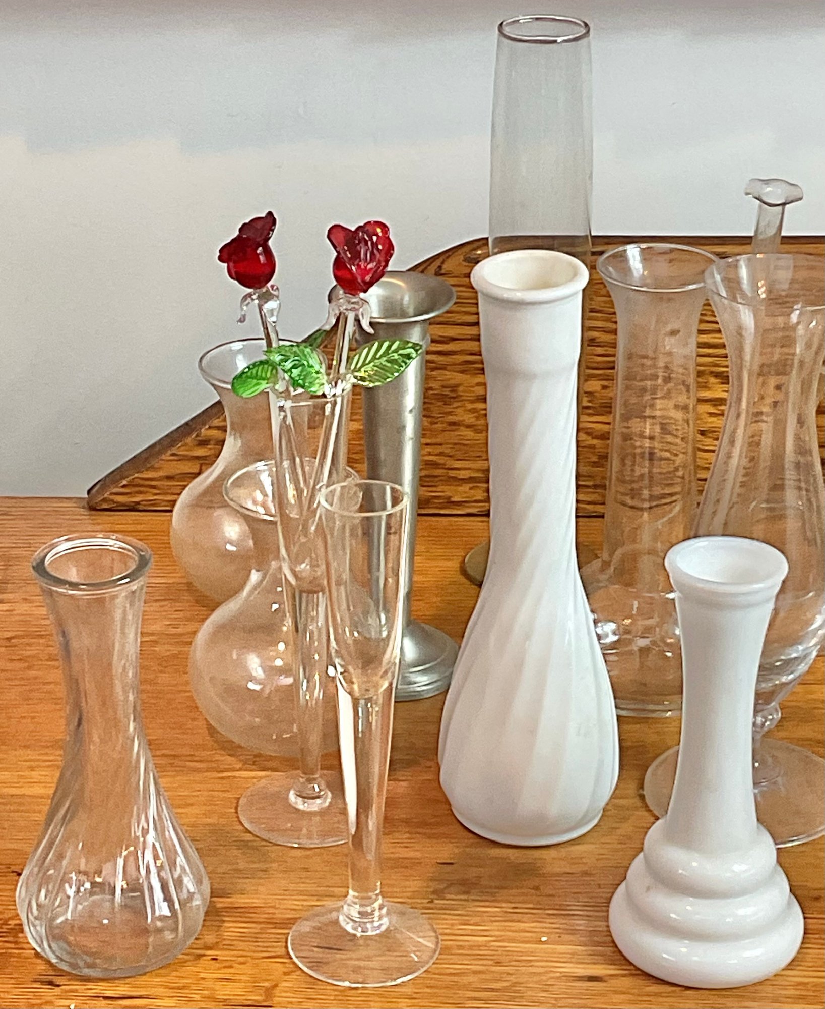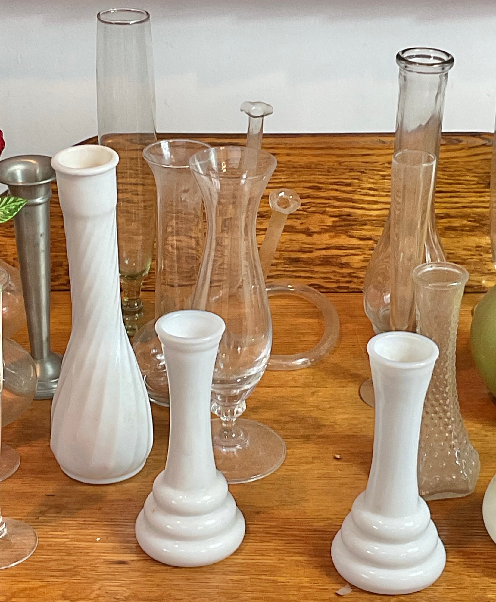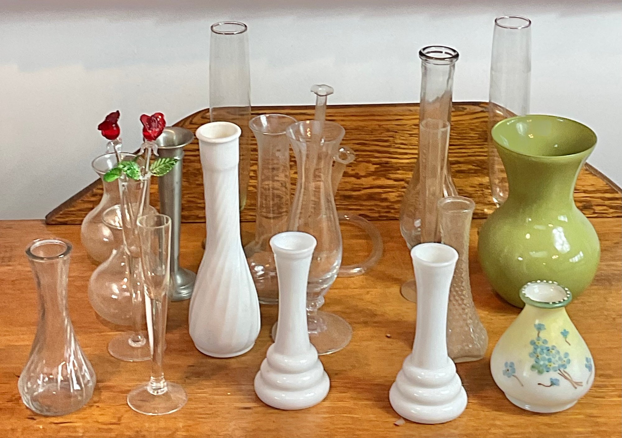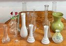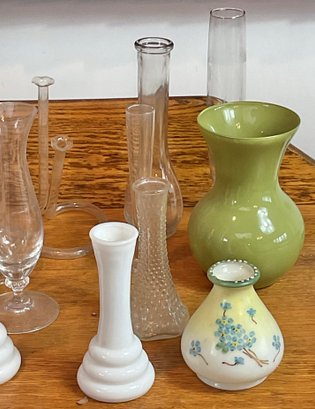 Assorted Glass Vases - no chips - 4.25” to 10” tall - good used condition