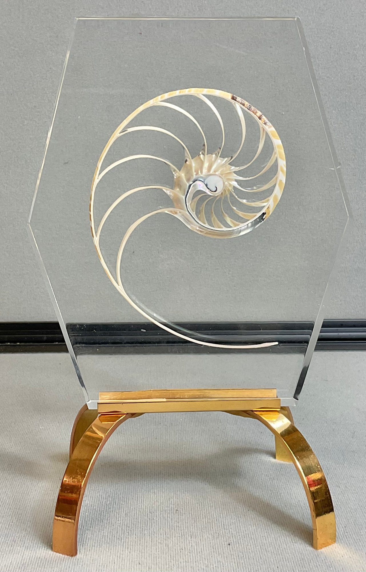 Awesome Opalized Chambered Nautilus In Lucite With brass base - 9.5” tall x 6 1/8” wide x .75” thick - good used condition
