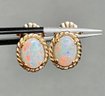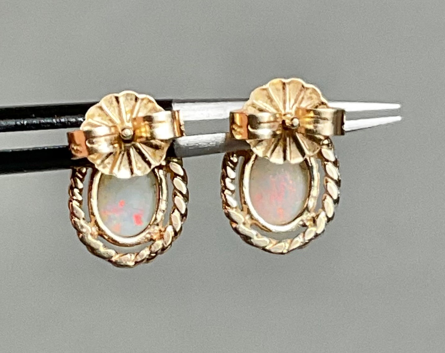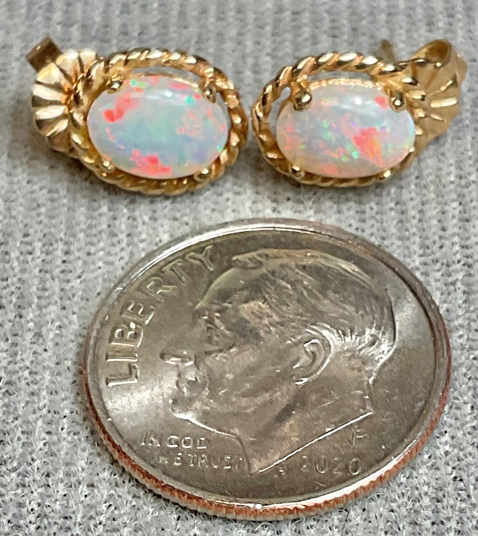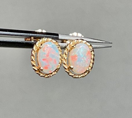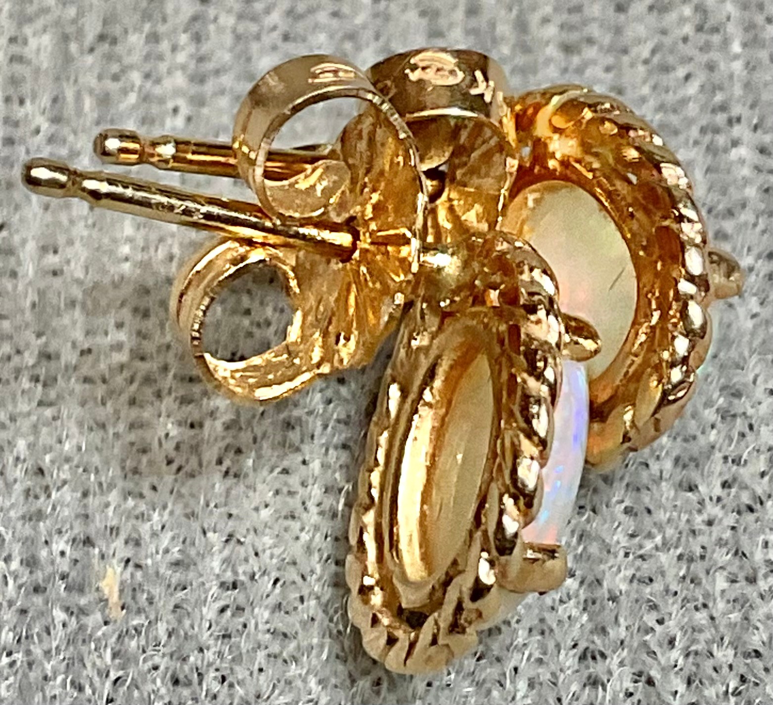 Beautiful 14k Gold Opal Stud Earrings - lots of fire - 5/16” x 1/4” - good used condition