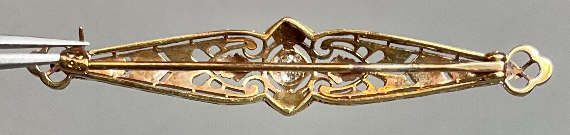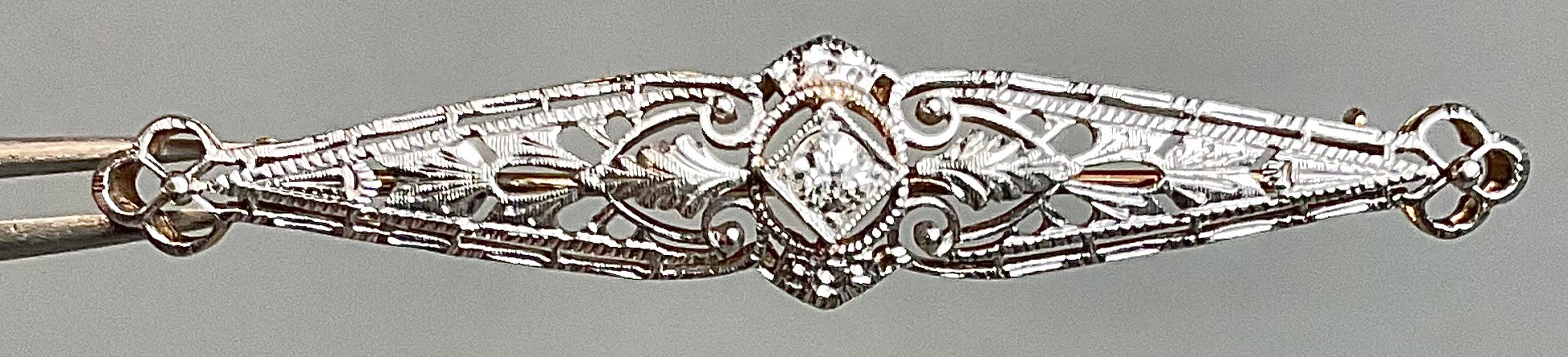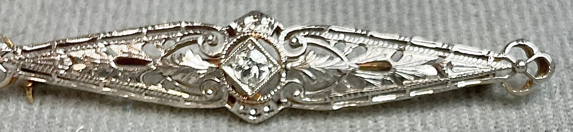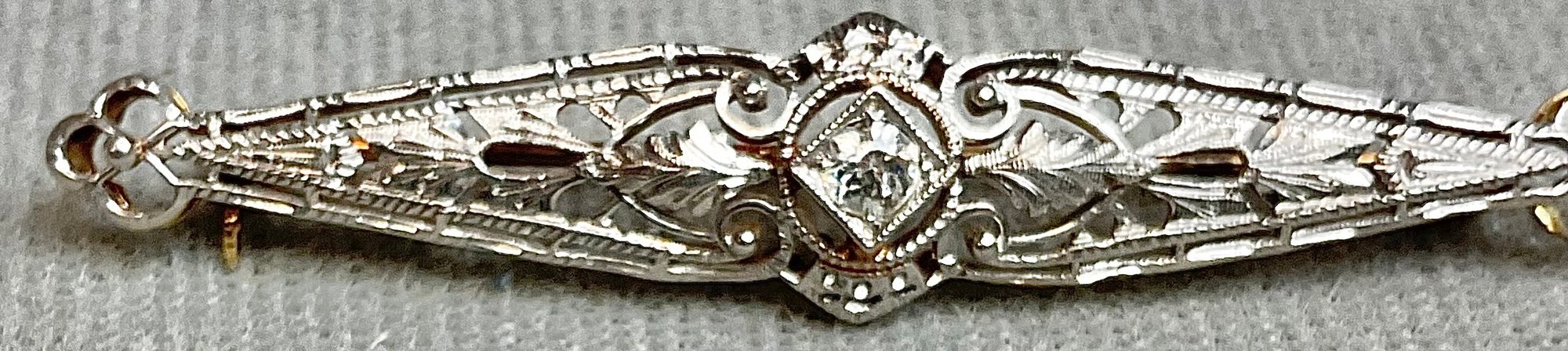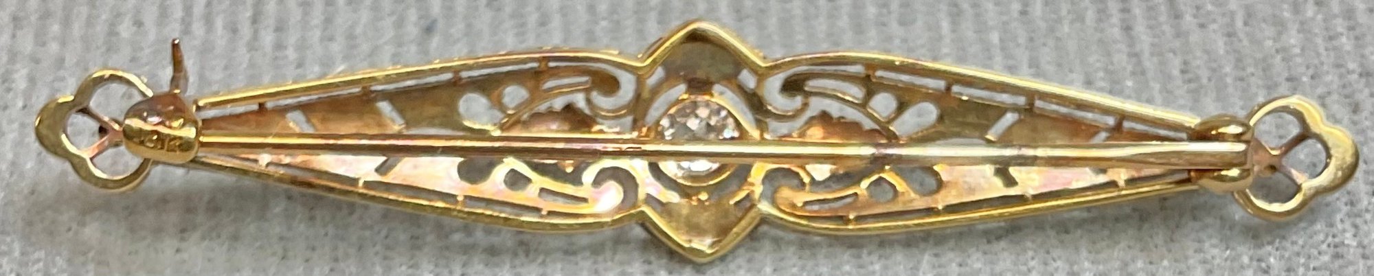 Beautiful 14k Yellow & White Gold Diamond Bar Pin - 2 1/8” long - 3/8” wide - - weighs 3.6 grams - good used condition