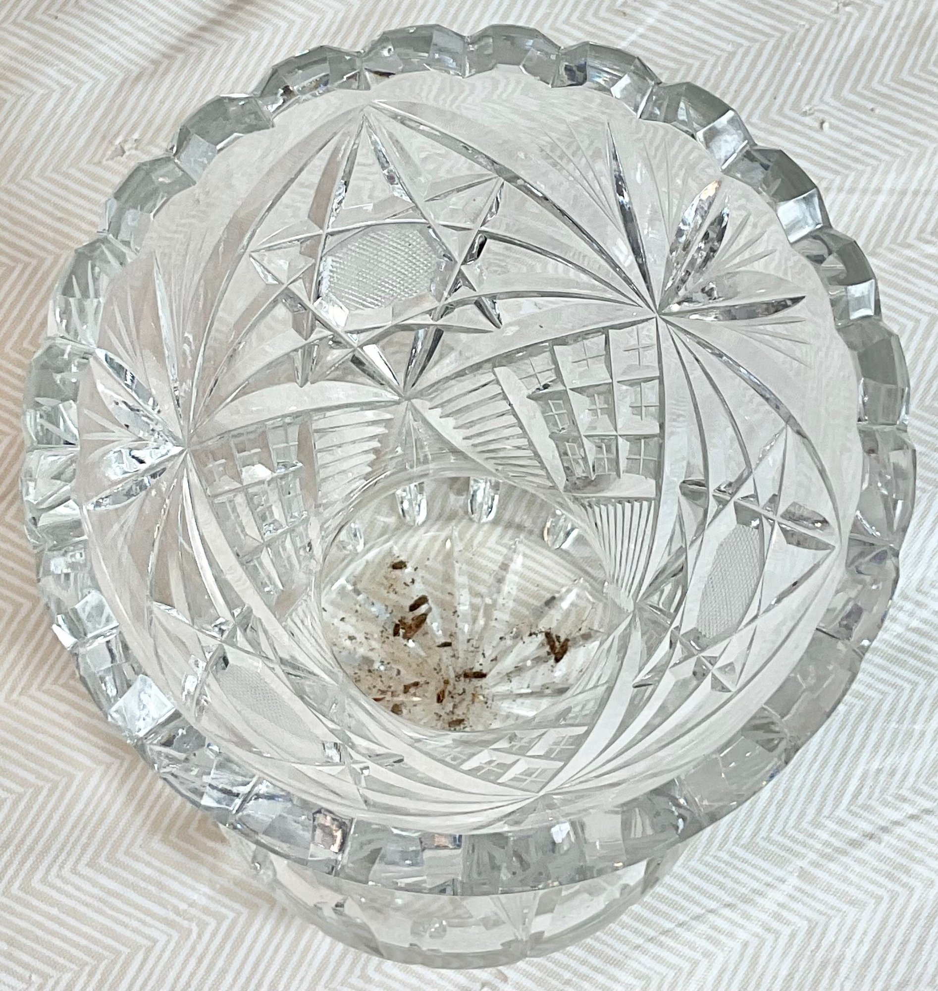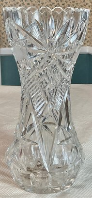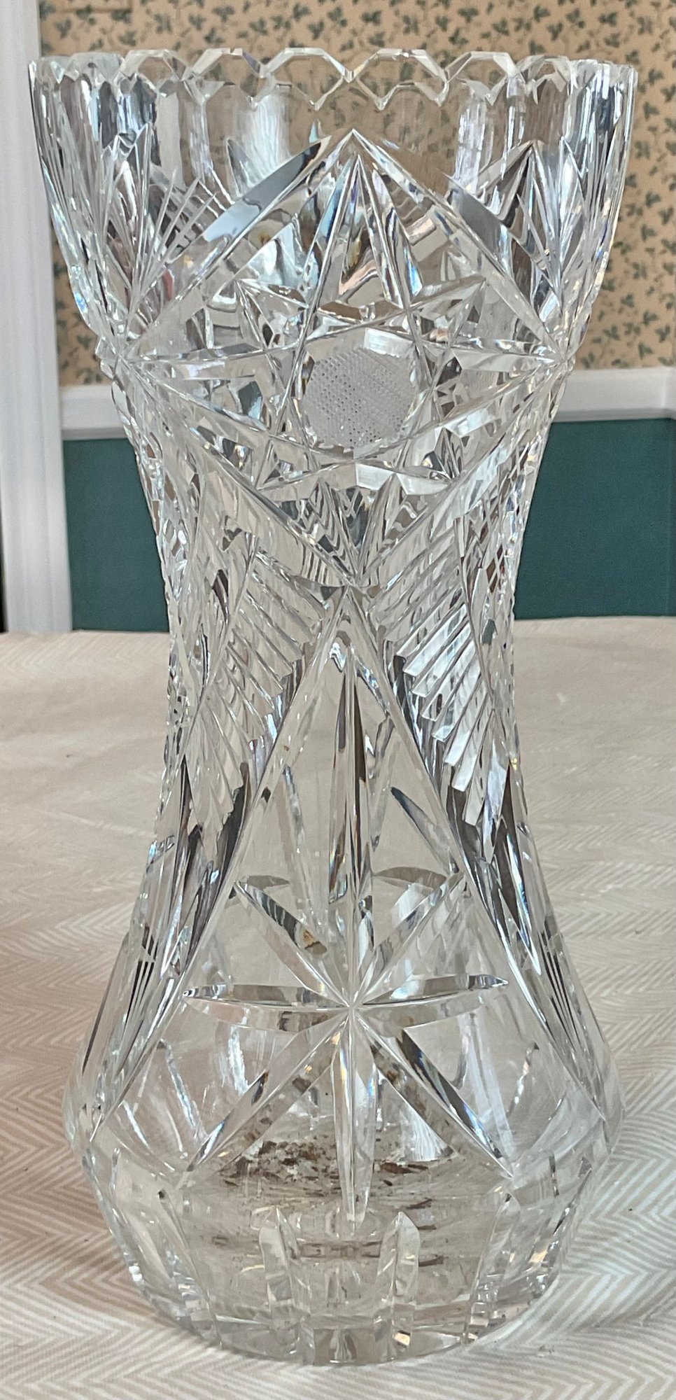 Beautiful Cut Glass Vase - no chips - 10” tall - 4 5/8” wide - good used condition