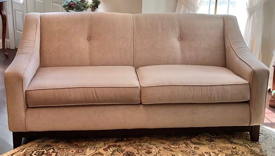 Beautiful Tan Two Cushion Sofa - 35” tall x 77” long x 34” wide - there isn’t any wear on the sofa, those are shadows - excellent used condition