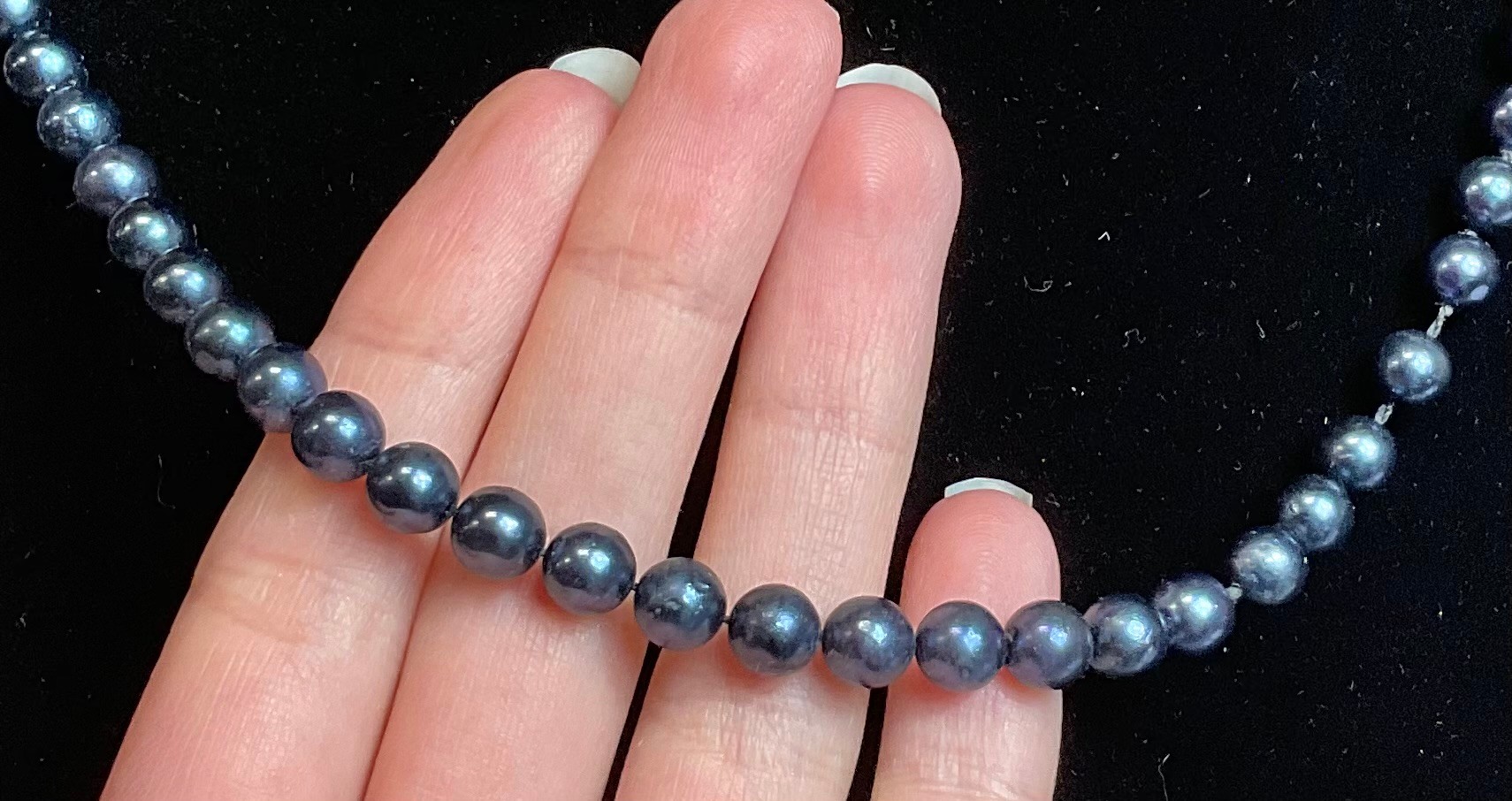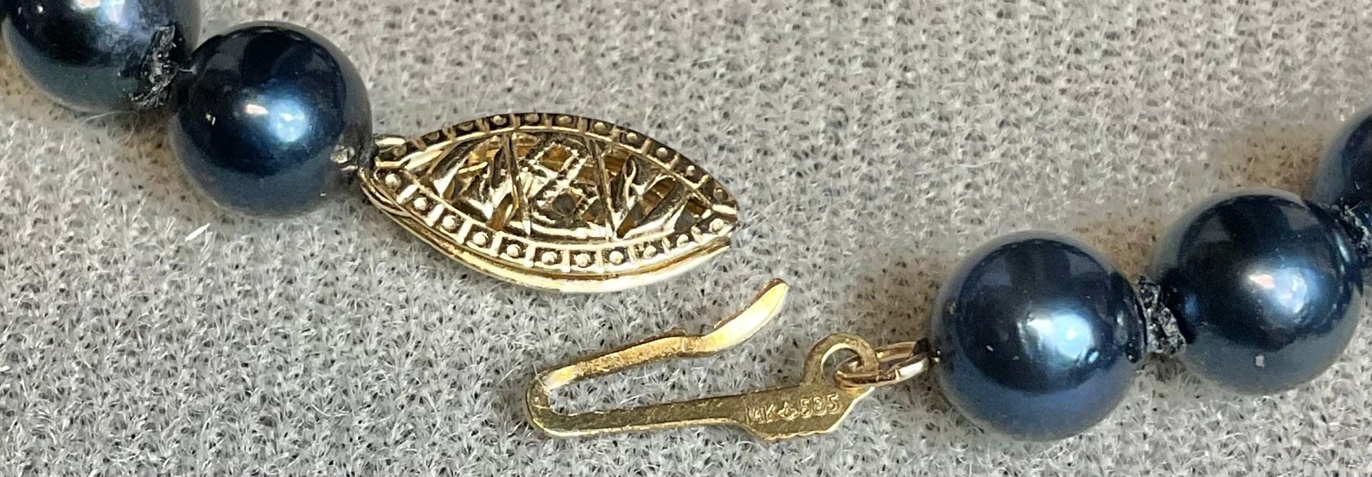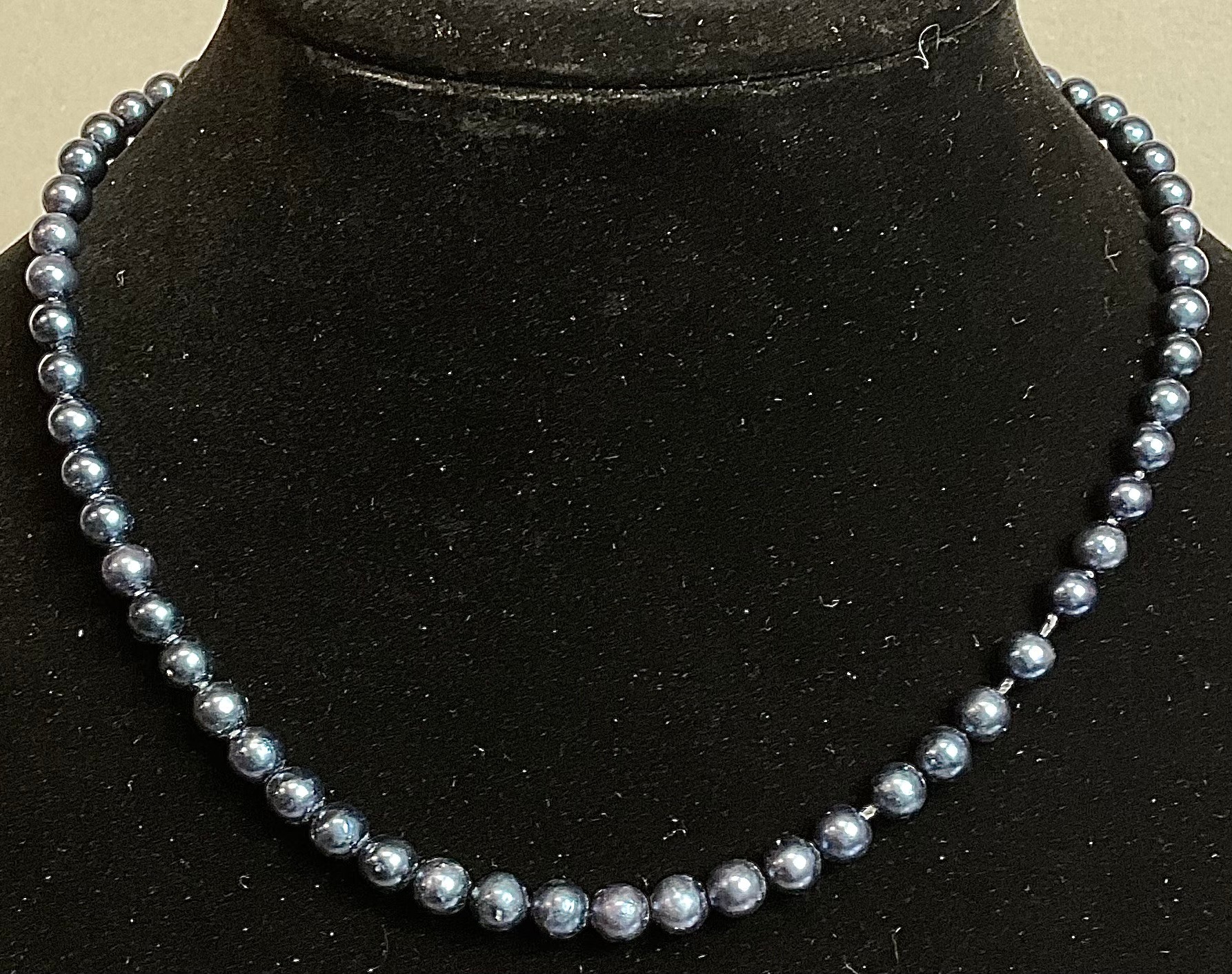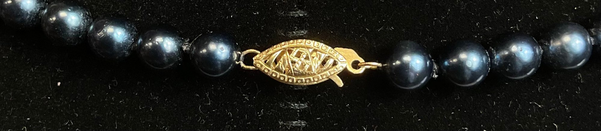 Blue Pearl Necklace W/ 14k Gold Clasp - 17” long - pearls 6.3mm - good used condition