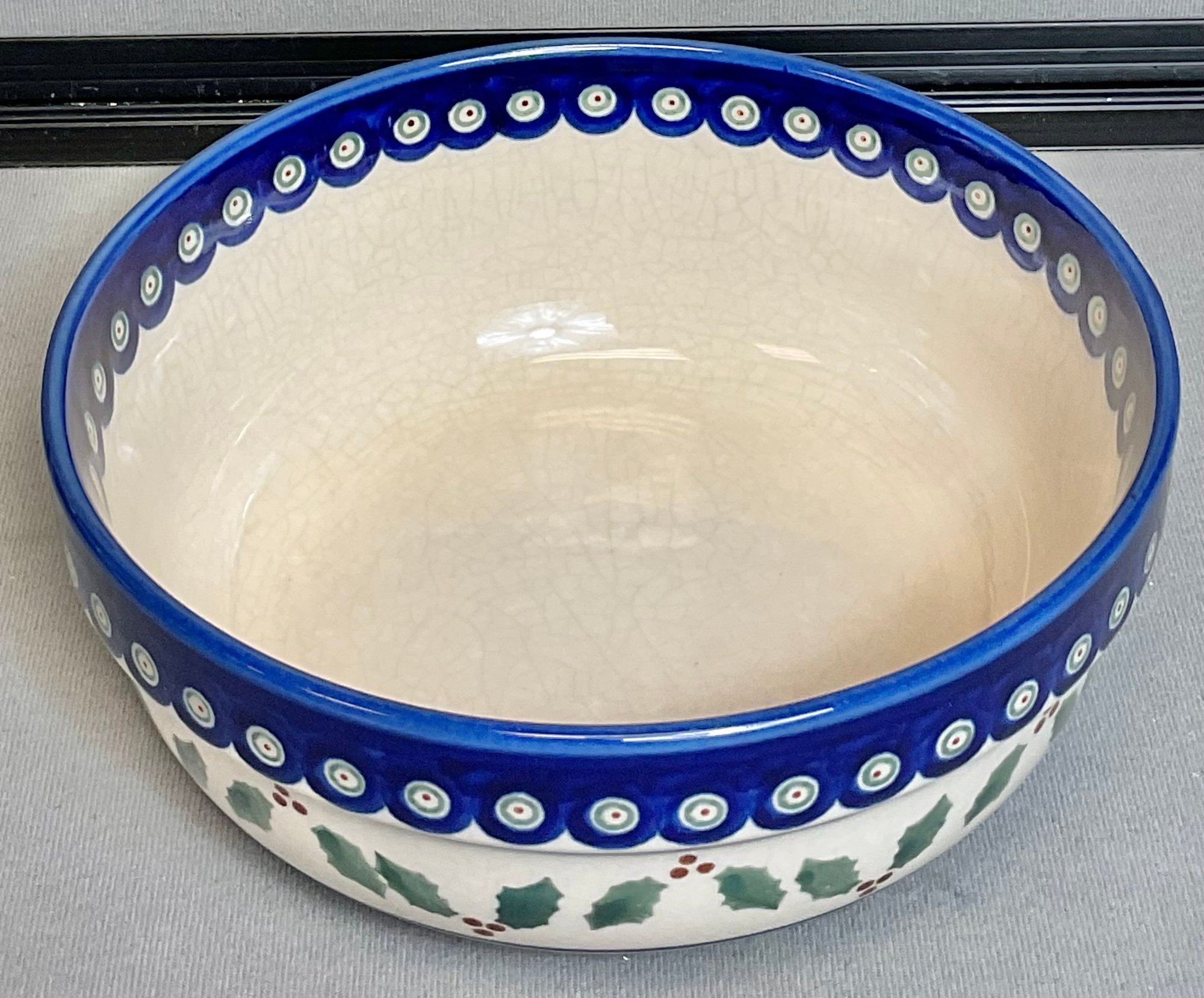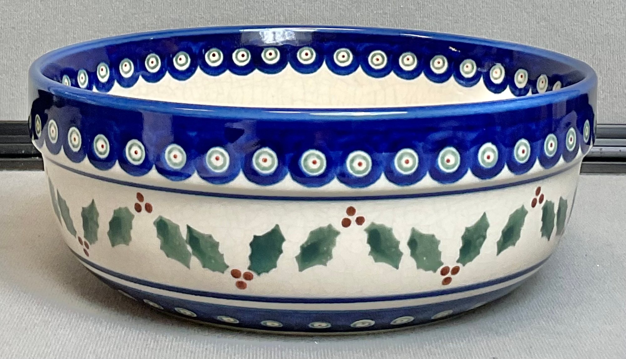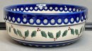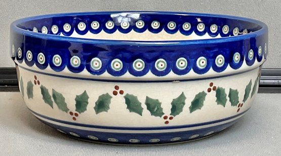 Boleslawiec Hand Made Poland Pottery Bowl - Holly & Berries - no chips - 3” tall - 7.75” round - good used condition