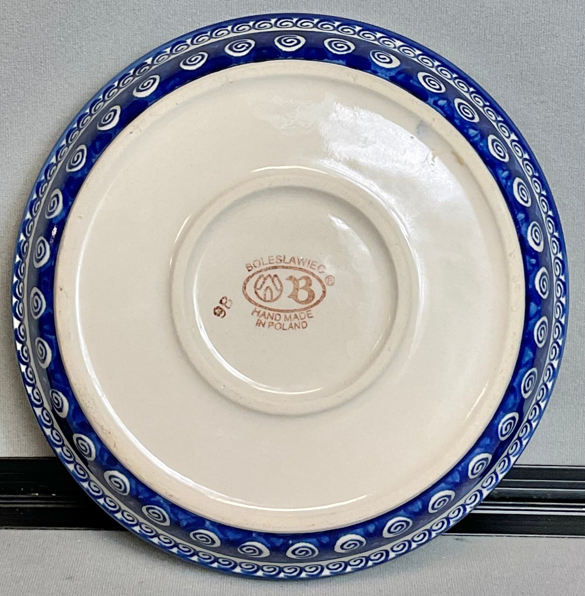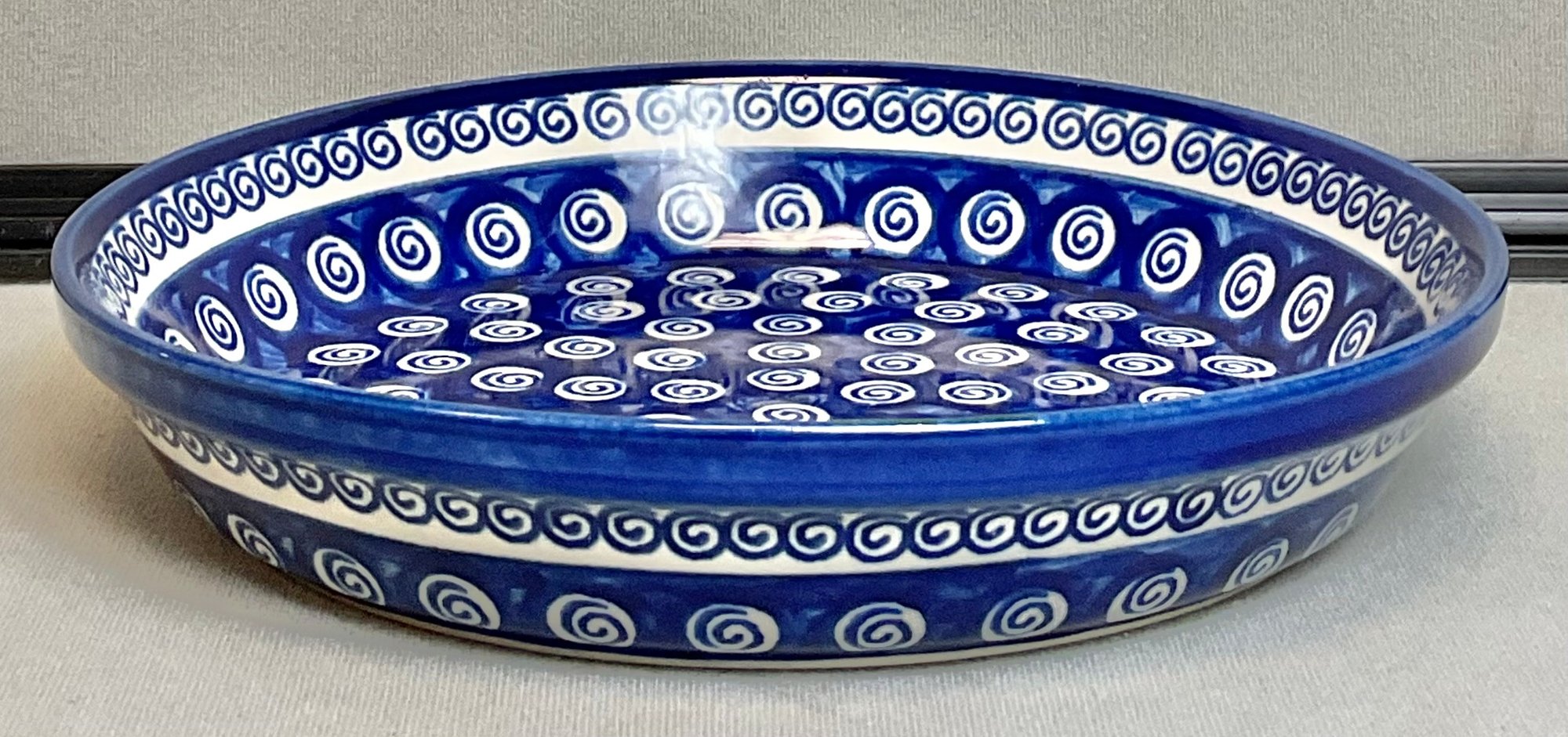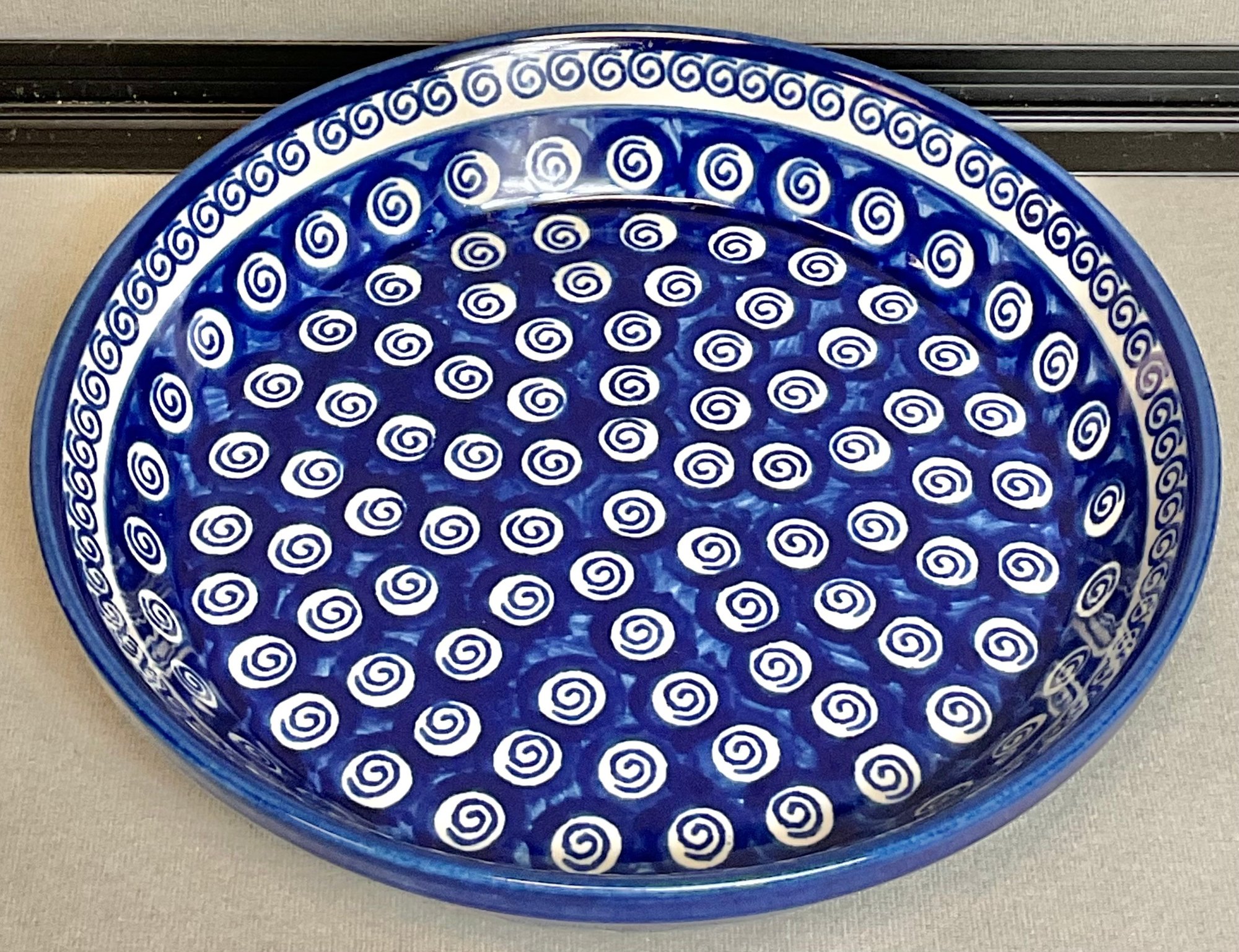 Boleslawiec Hand Made Poland Pottery Bowl - Pie/Quiche Dish - cobalt swirl- no chips - 1.75” tall - 9.75” round - good used condition