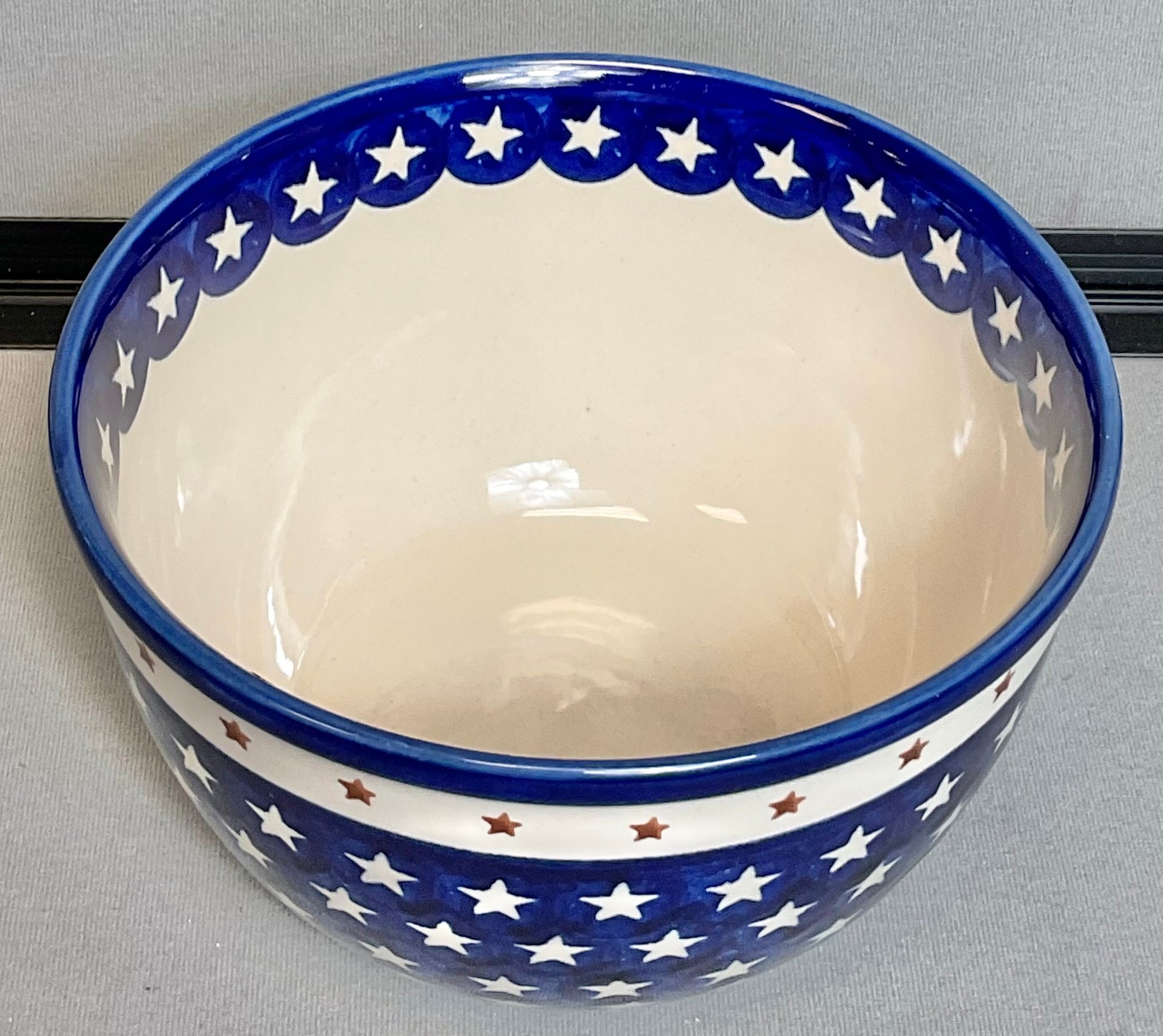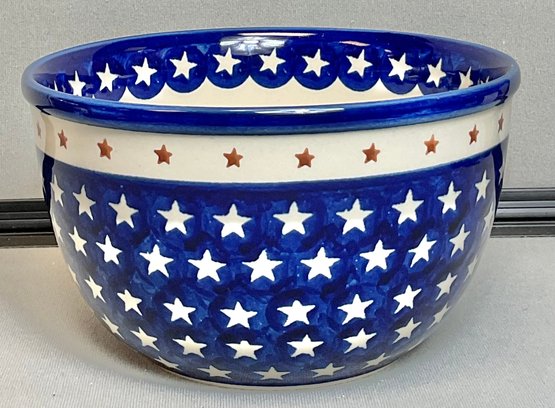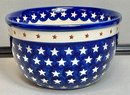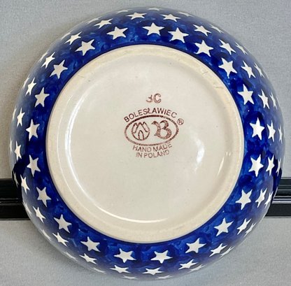 Boleslawiec Hand Made Poland Pottery Bowl - Stars - no chips - 4 5/8” tall - 8” round - good used condition