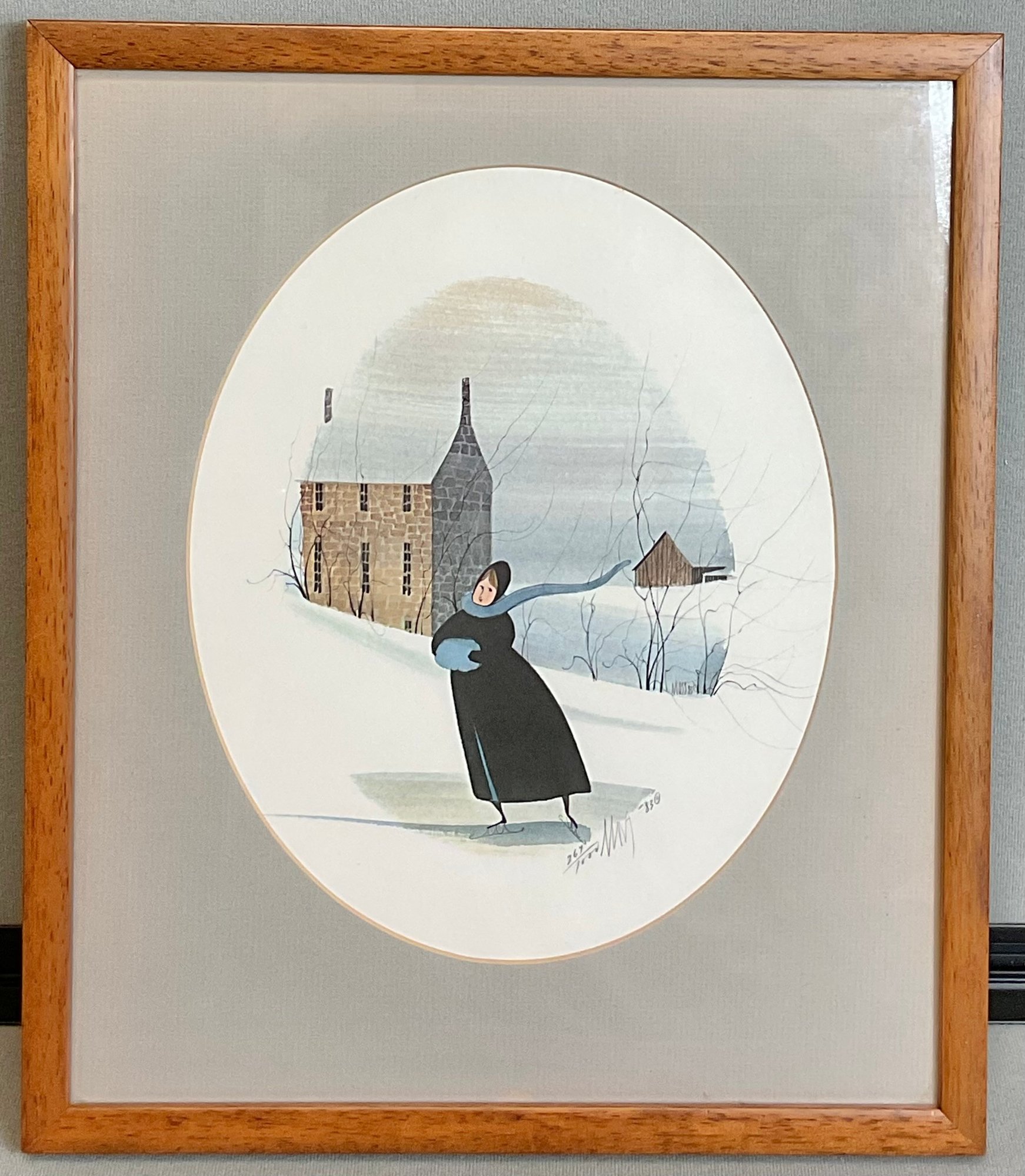 P Buckley Moss - Winter Skater - Signed & Numbered - 267/1000 - measures 12” x 14” - good used condition
