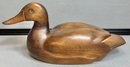 Carved Wood Duck Decoy - glass eyes - 6.5” tall x 14.25” long x 5.75” wide - good used condition