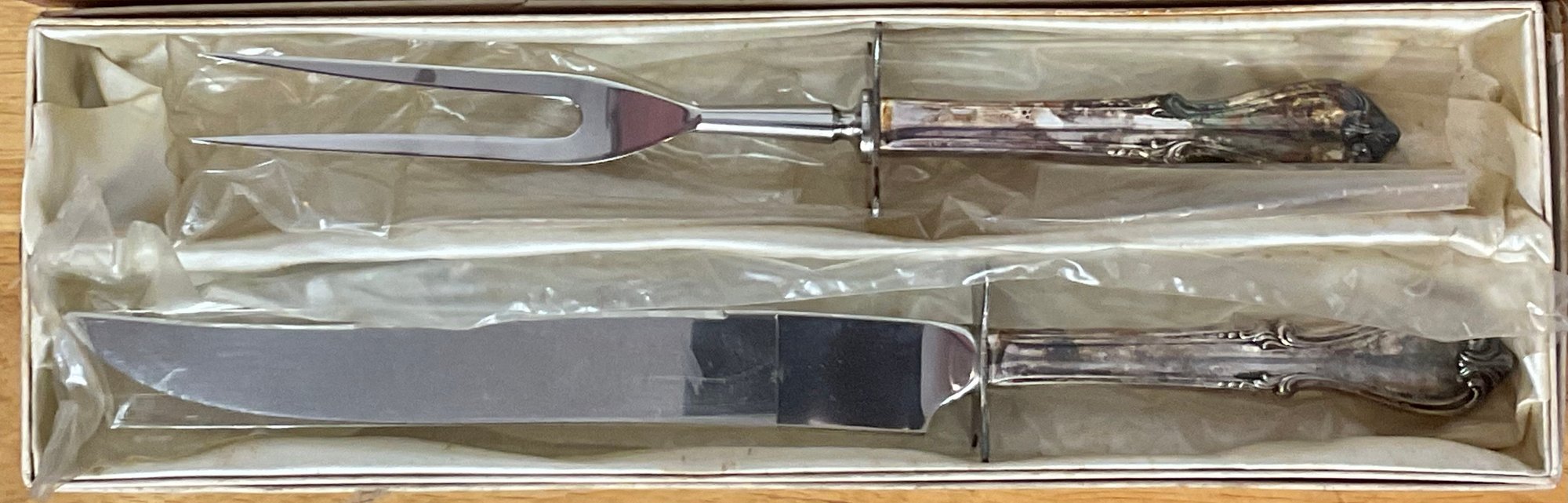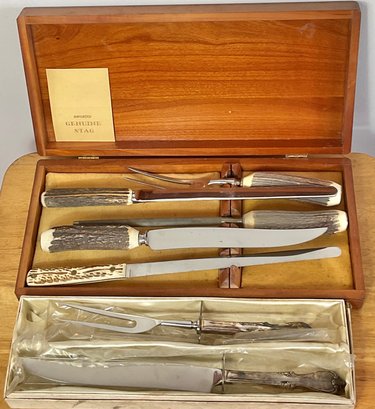 Carving Sets - Stag Handle/ Silver Plate - good used condition