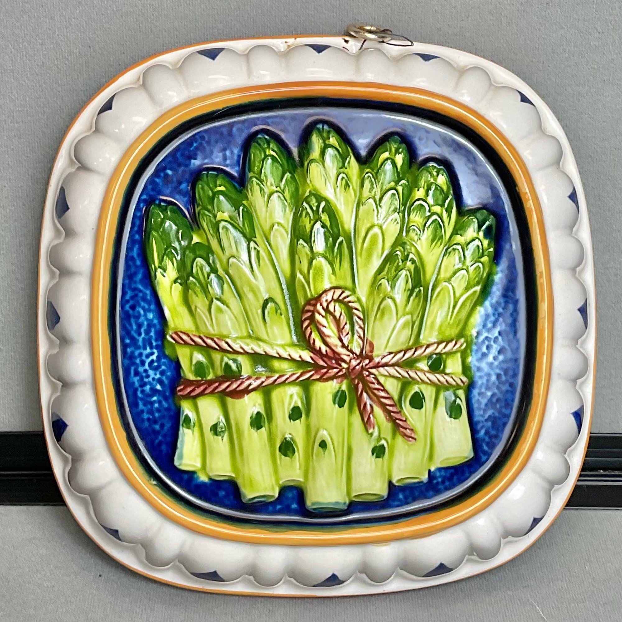 Ceramic Hand Painted Asparagus Mold - 2.5” tall x 8.5” long x 8.5” wide - no chips - good used condition