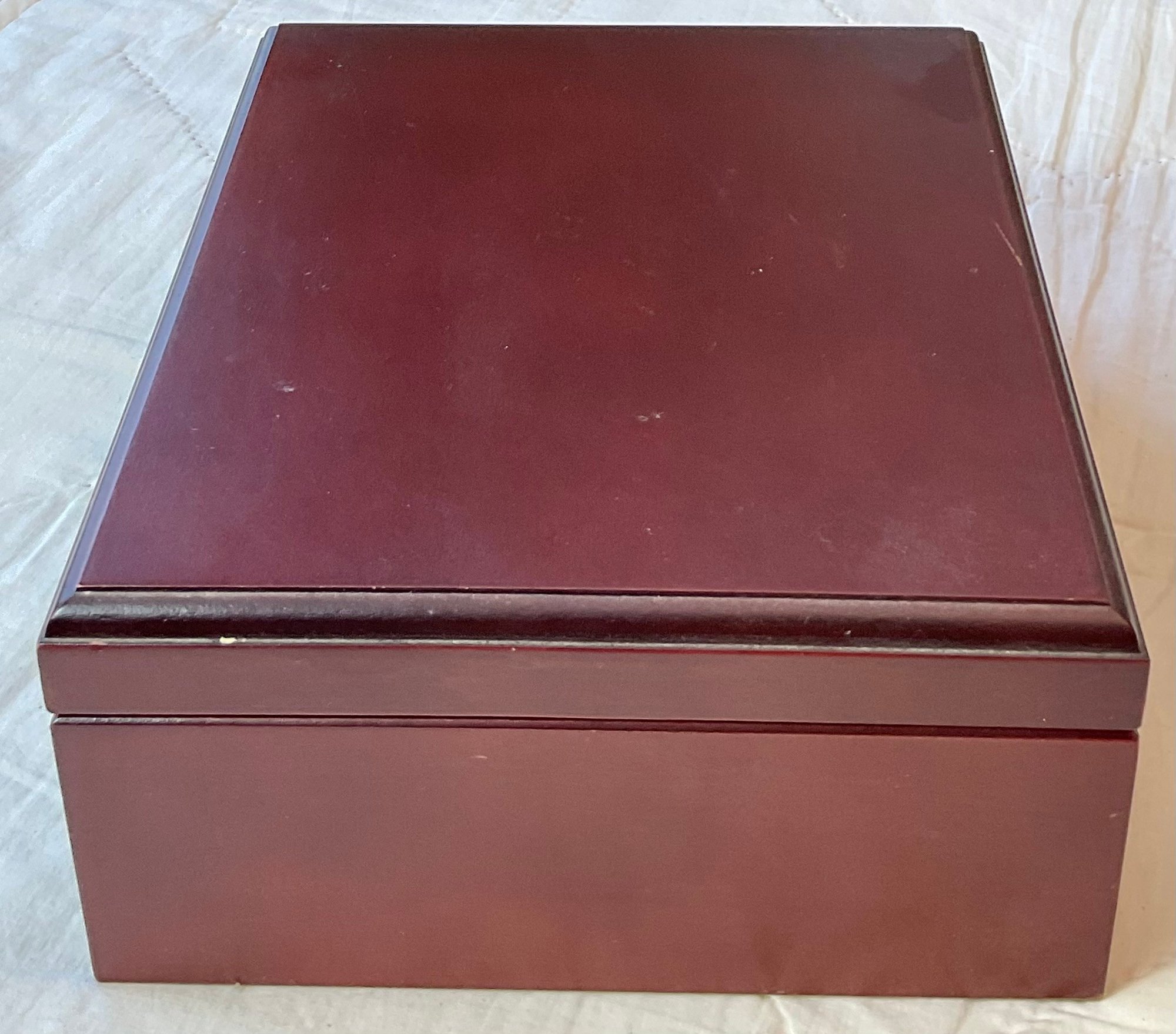 Cherry Wood Finish Humidor - 4.25” tall x 10.25” long x 8.75” wide - good used condition