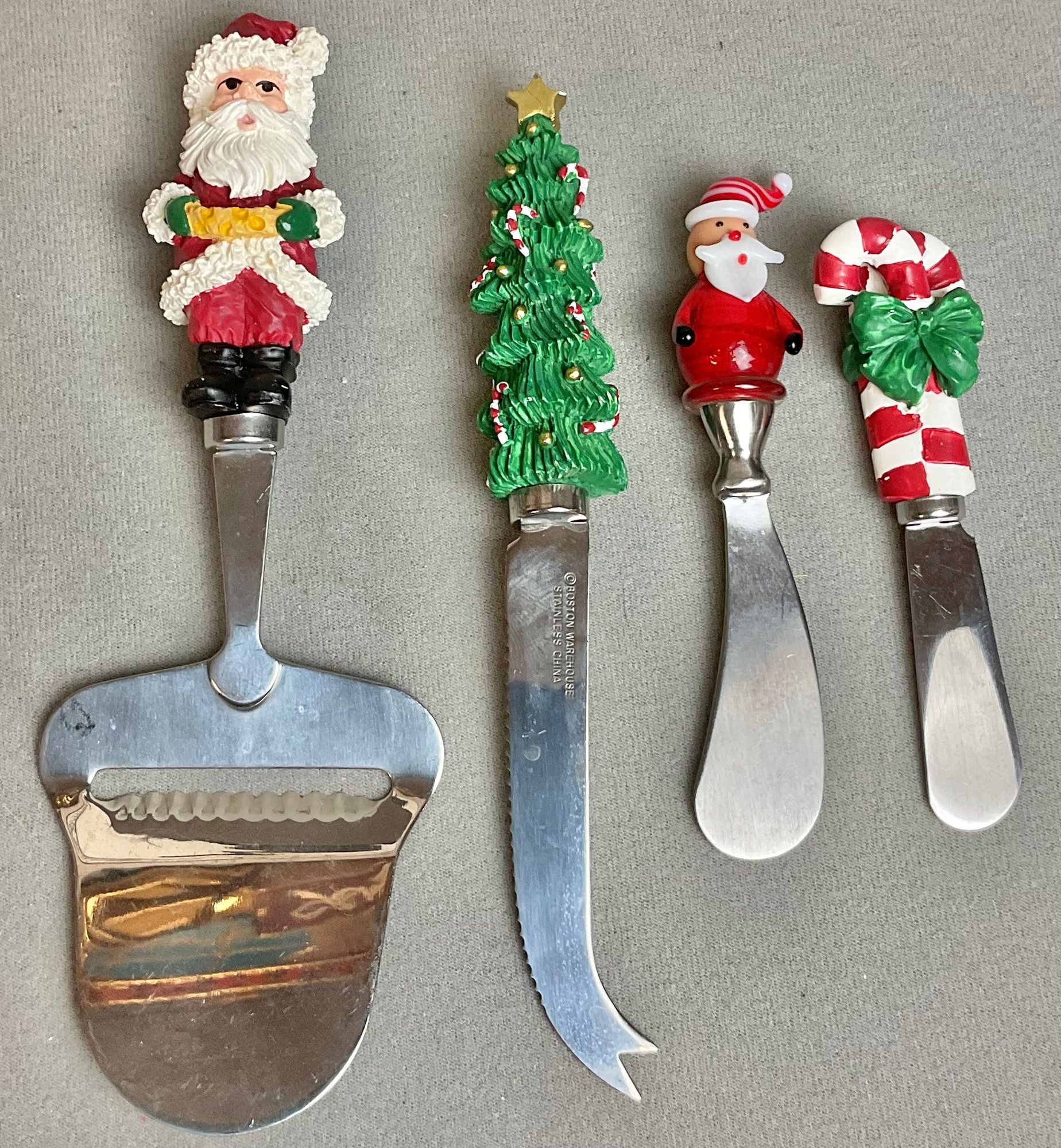 Christmas Theme Cheese Knives/ Spreaders - good used condition