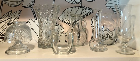 Clear Glass Lot W/ Fairy Lamp - vases - as found on shelf - good used condition -