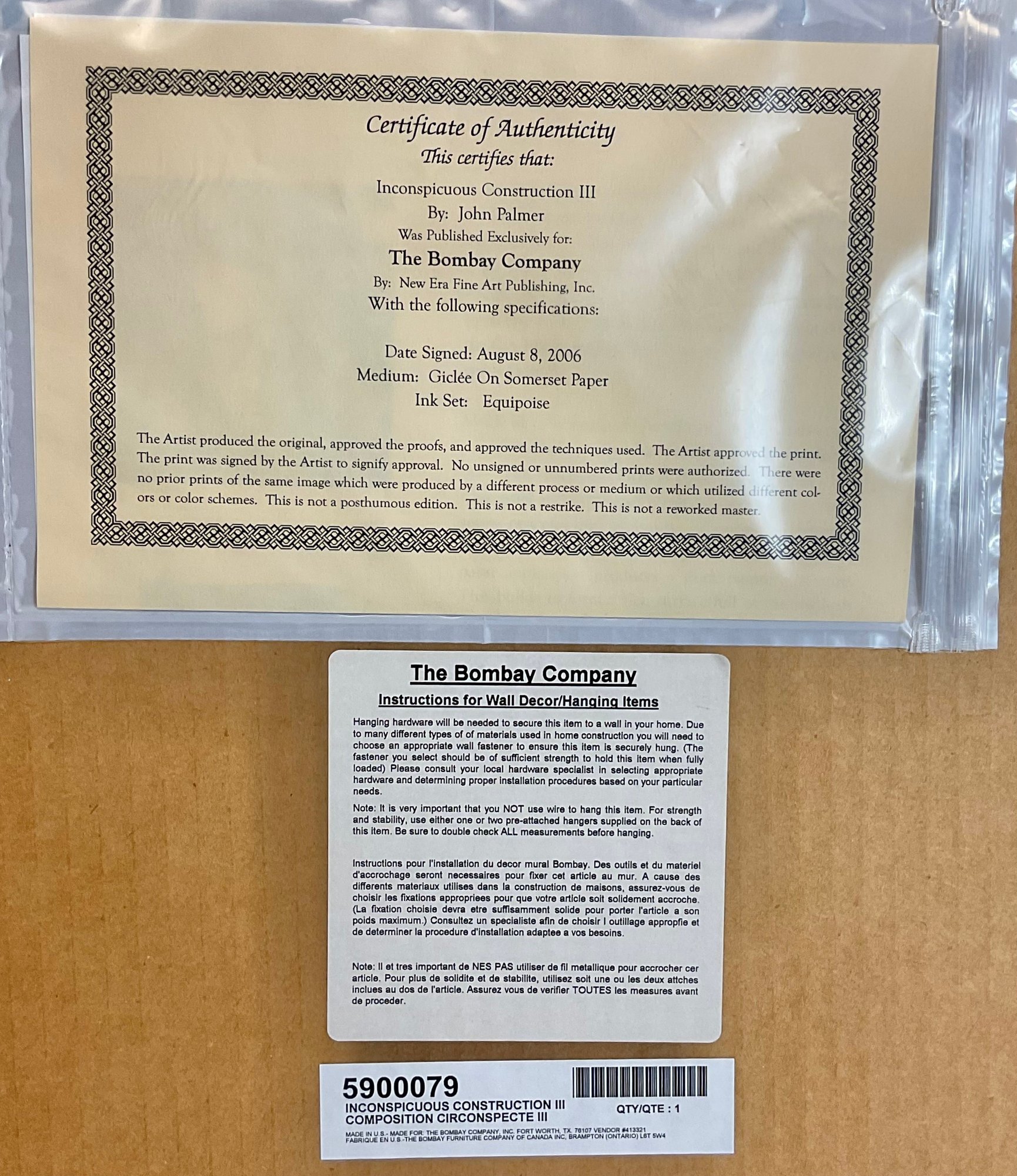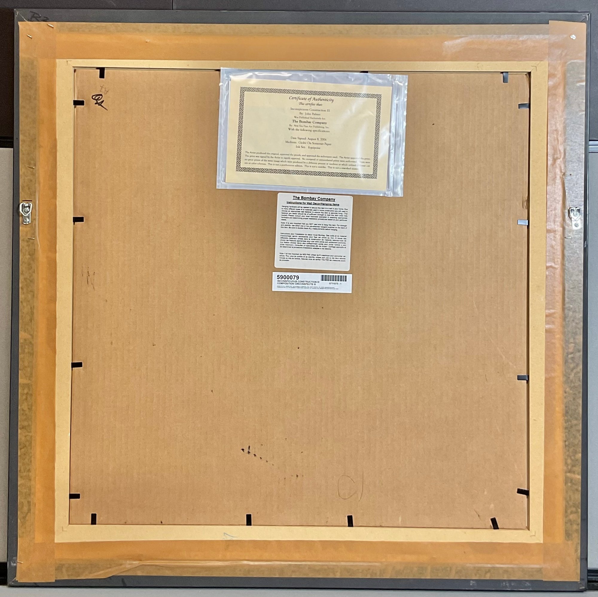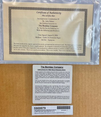 Inconspicuous Construction III - Artist Signed Giclee On Somerset Paper - John Palmer - made exclusively for Bombay Company - has COA - 30.25” x 30.25” - good used condition