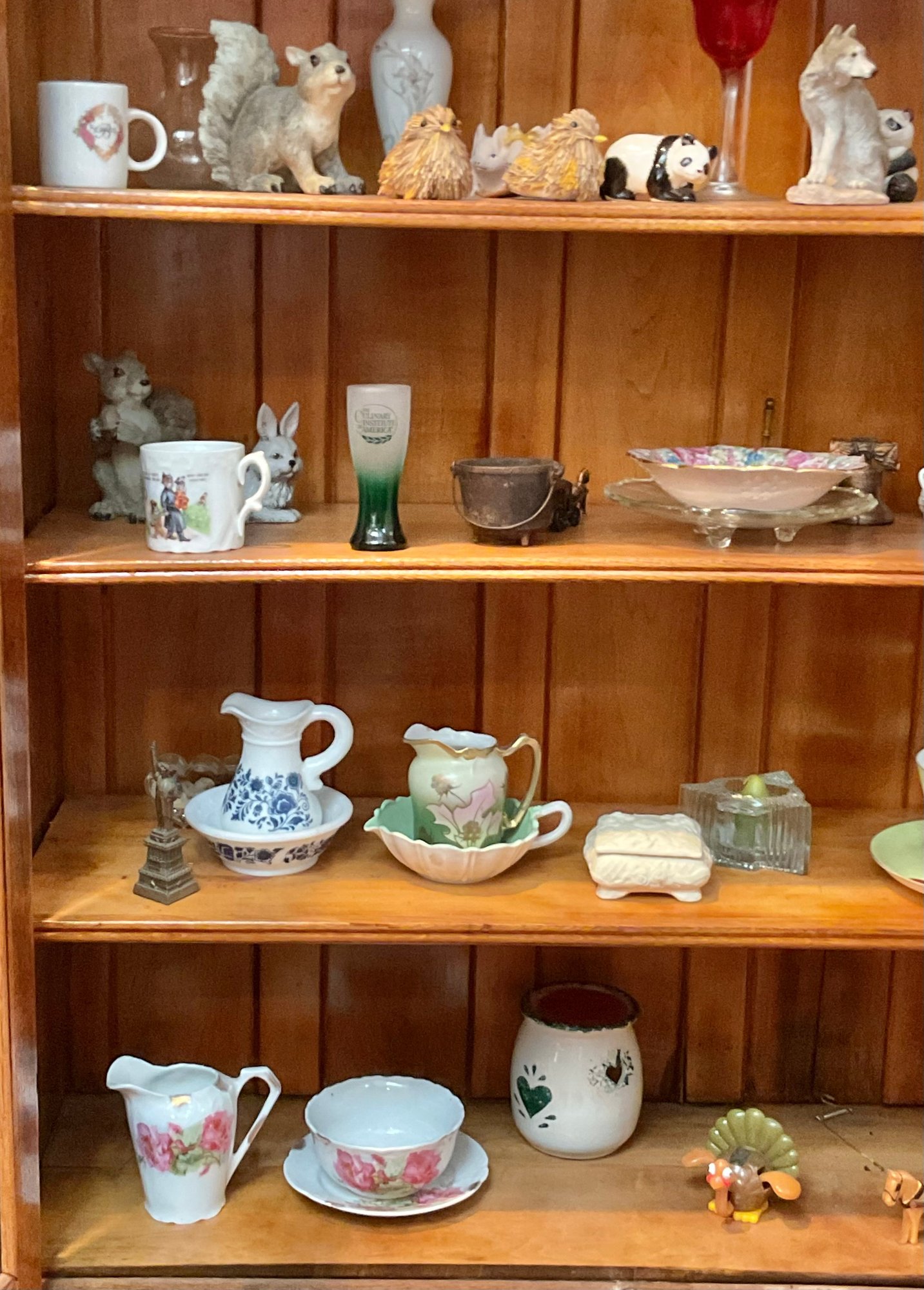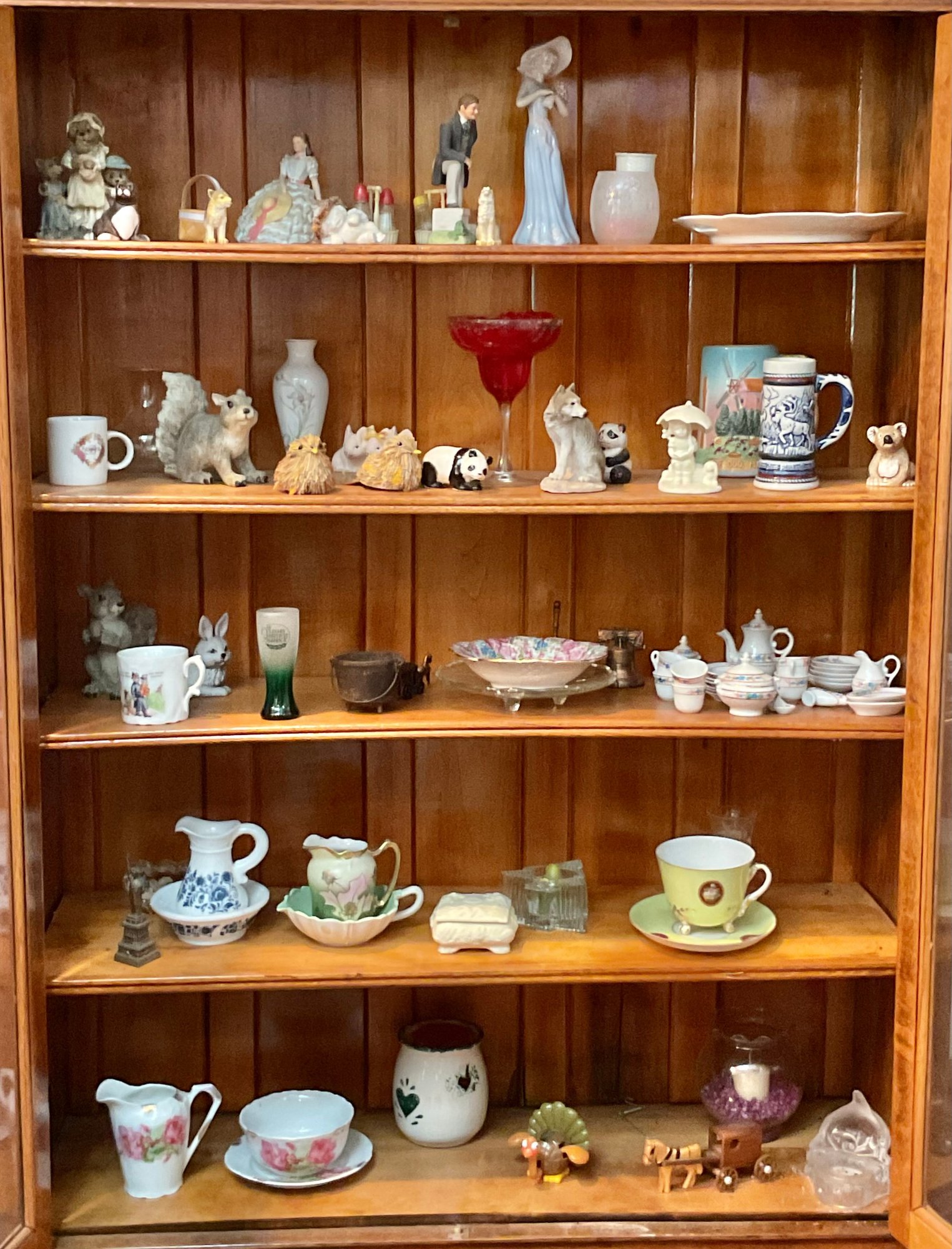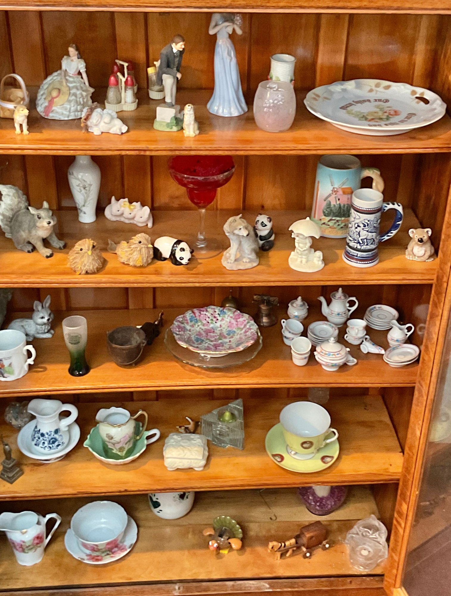 Contents Oak Curio Cabinet - as found - assorted pieces - good used condition