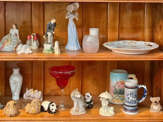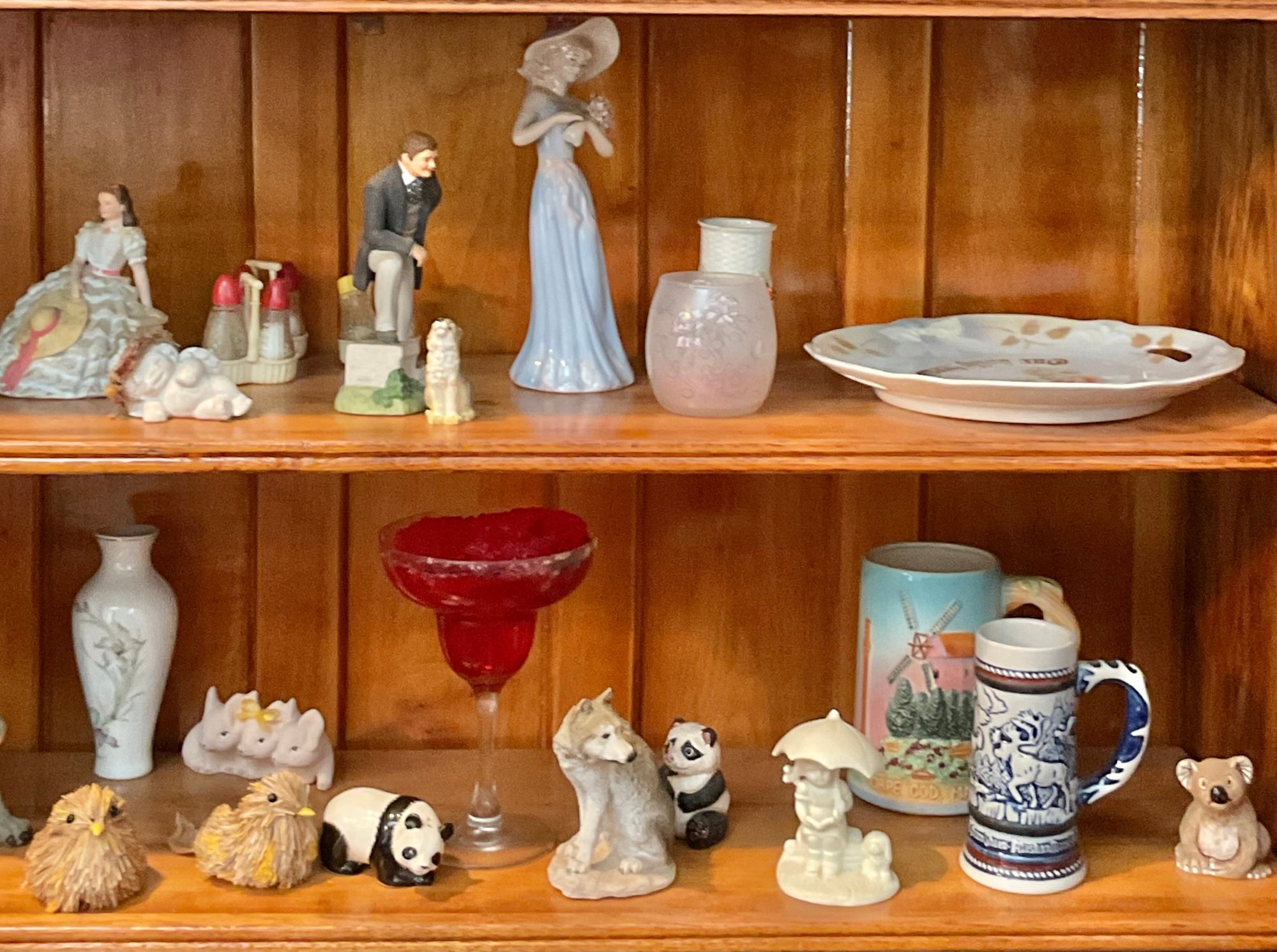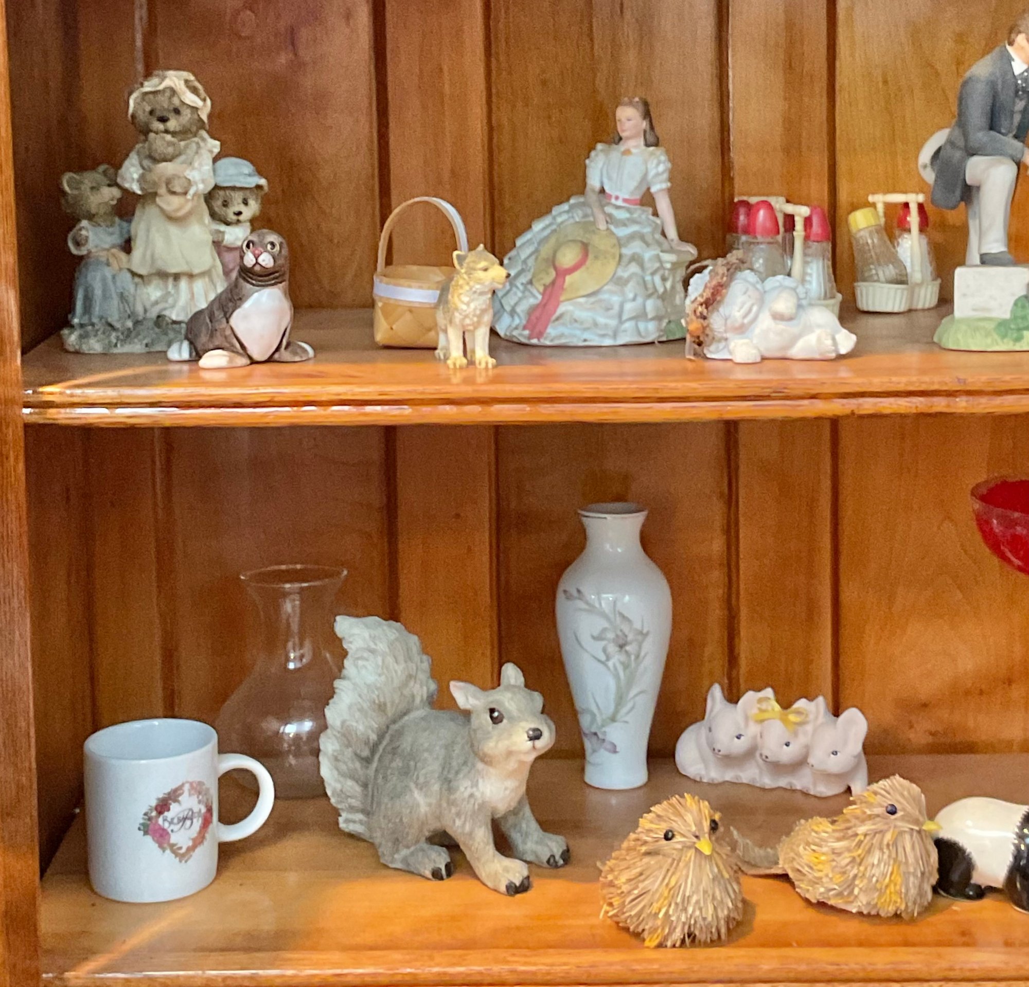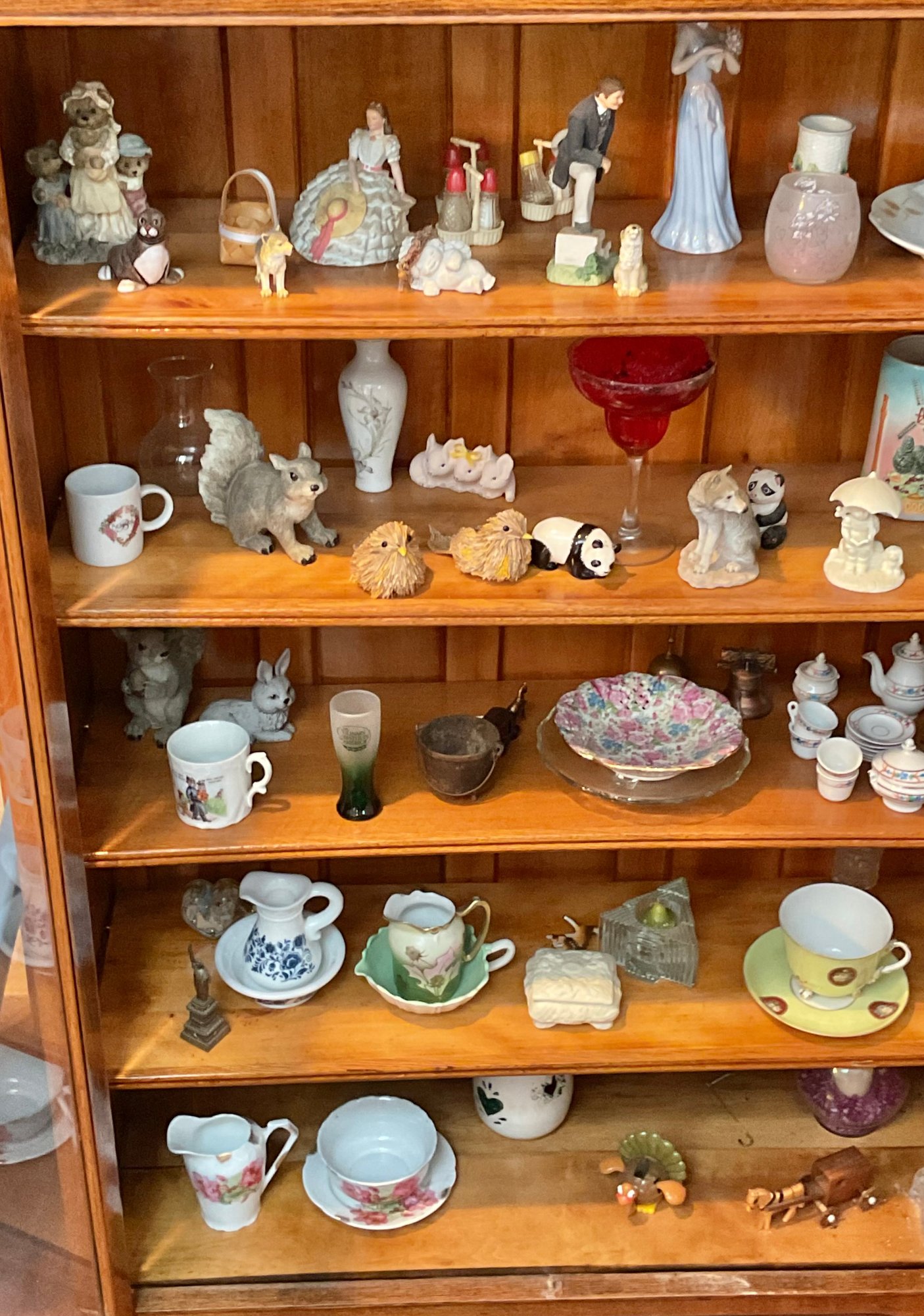 Contents Oak Curio Cabinet - as found - assorted pieces - good used condition
