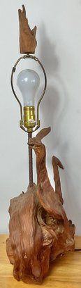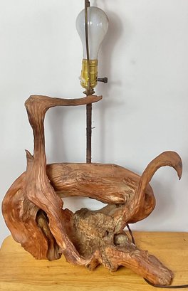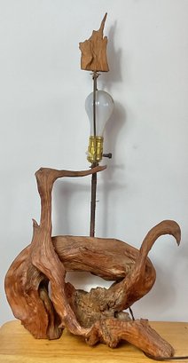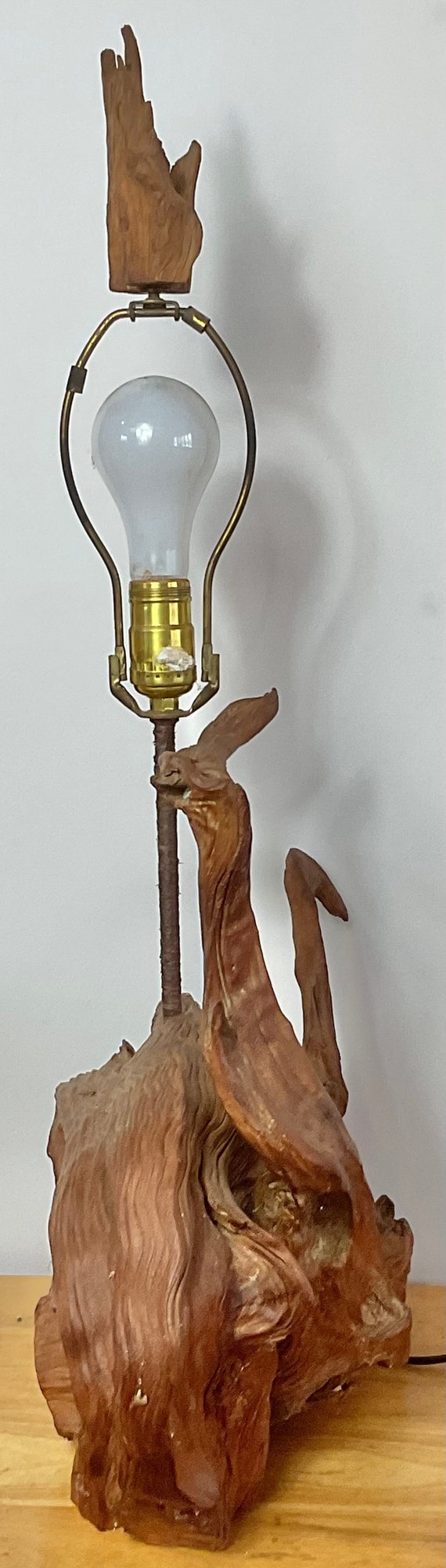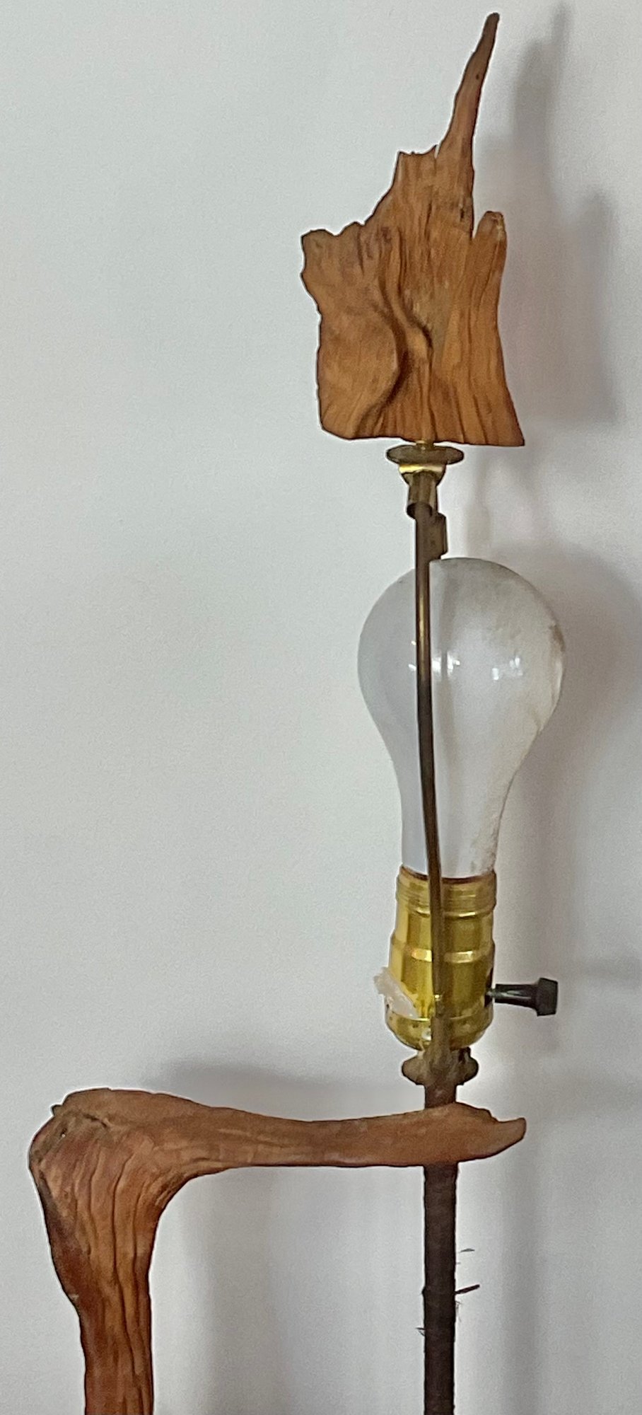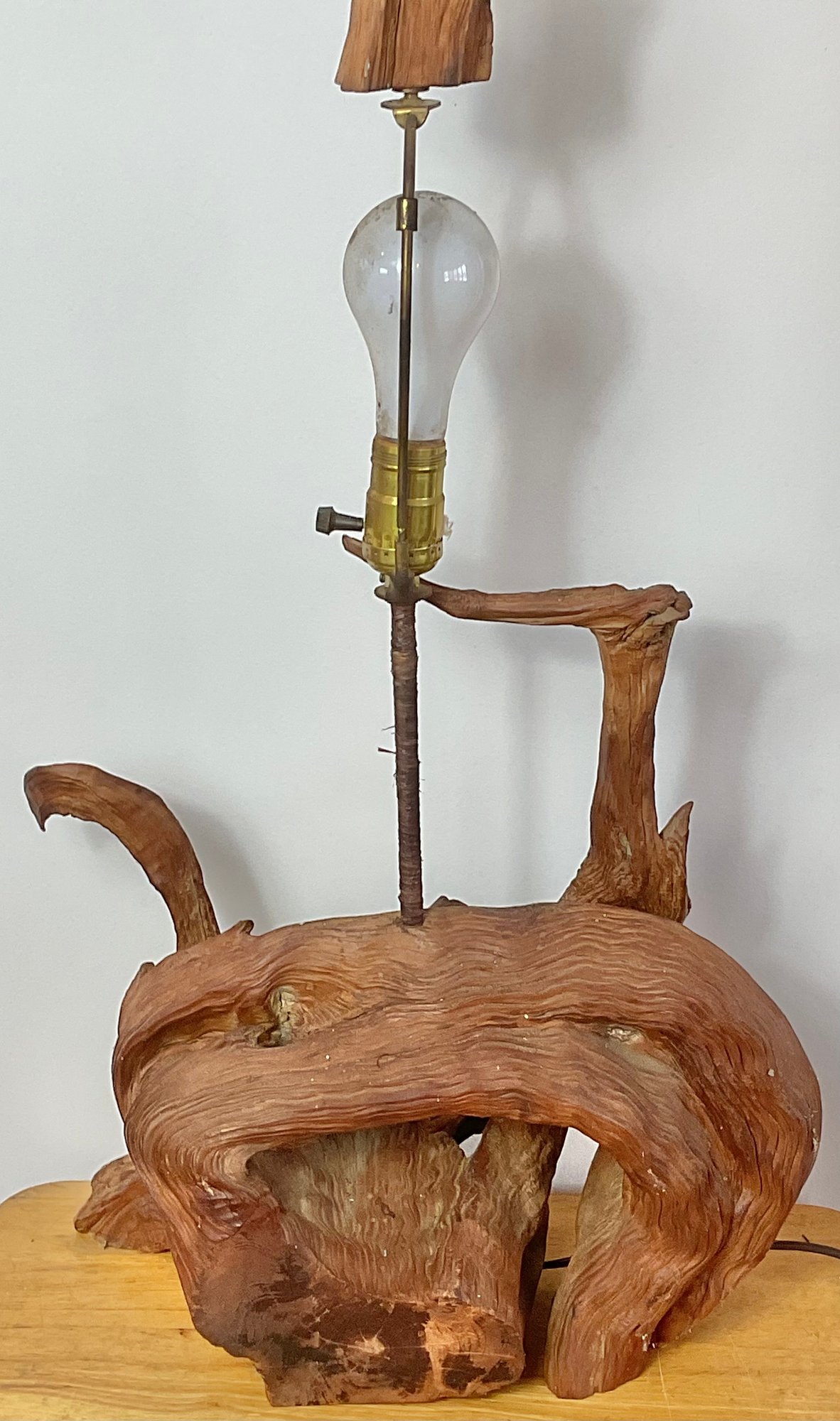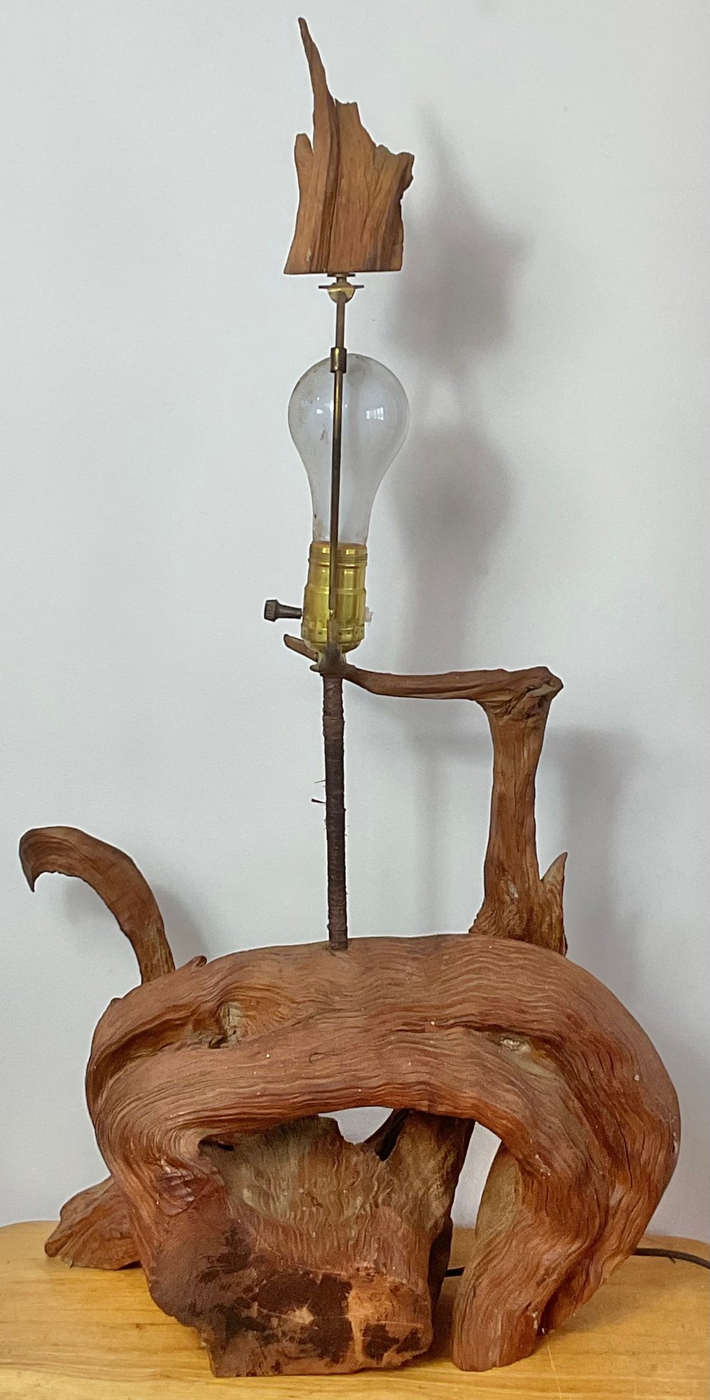 Cool Driftwood Table Lamp - needs shade - has driftwood finial - 29” tall x 14” long x 8” wide - good used condition