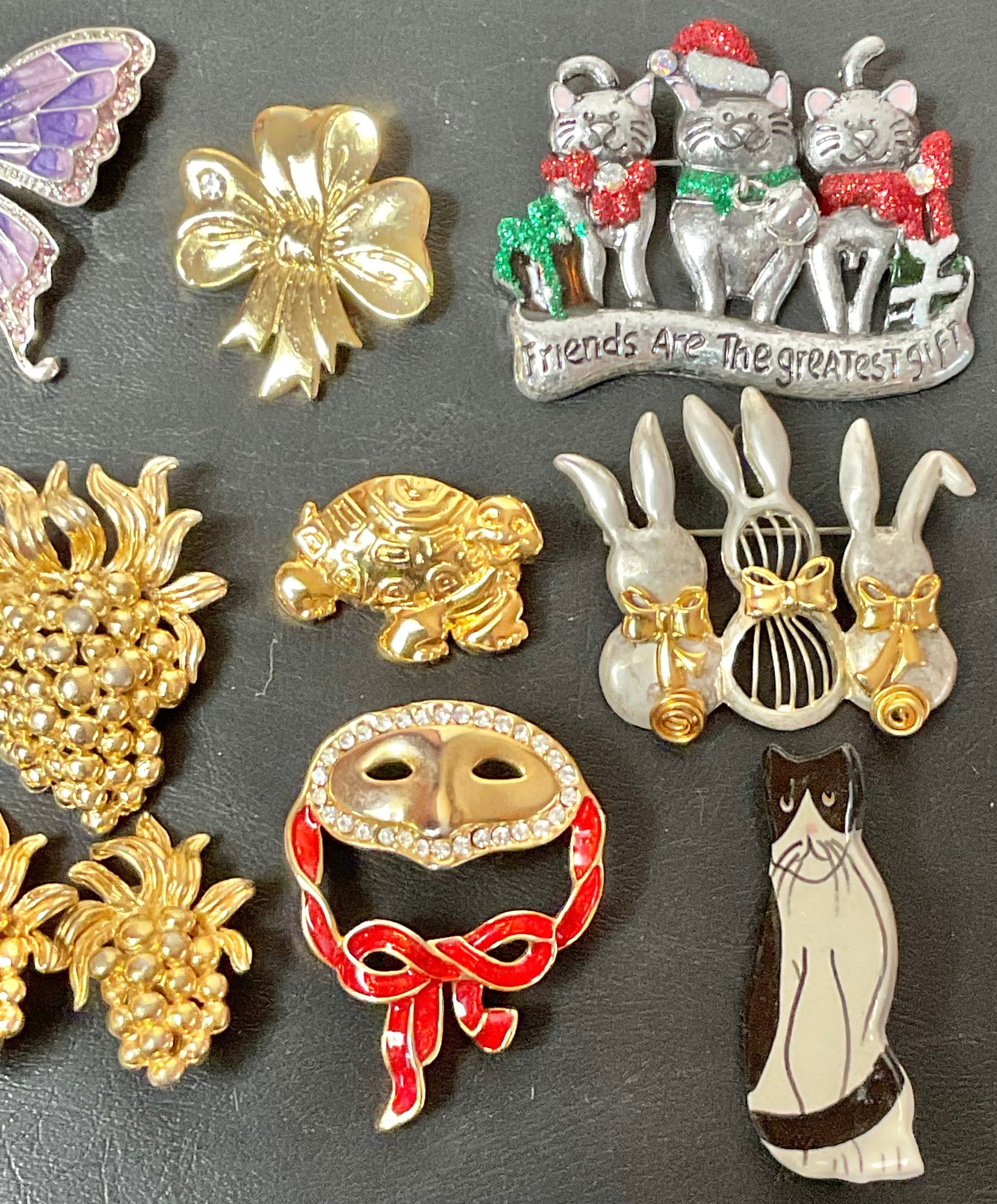 Costume Jewelry Brooches & Napier 3pc Set (Grape cluster) - good used condition