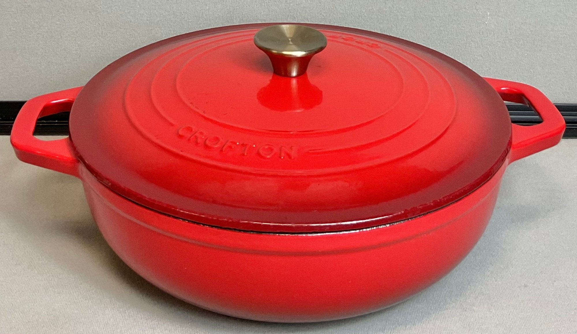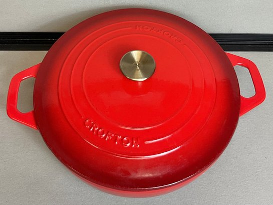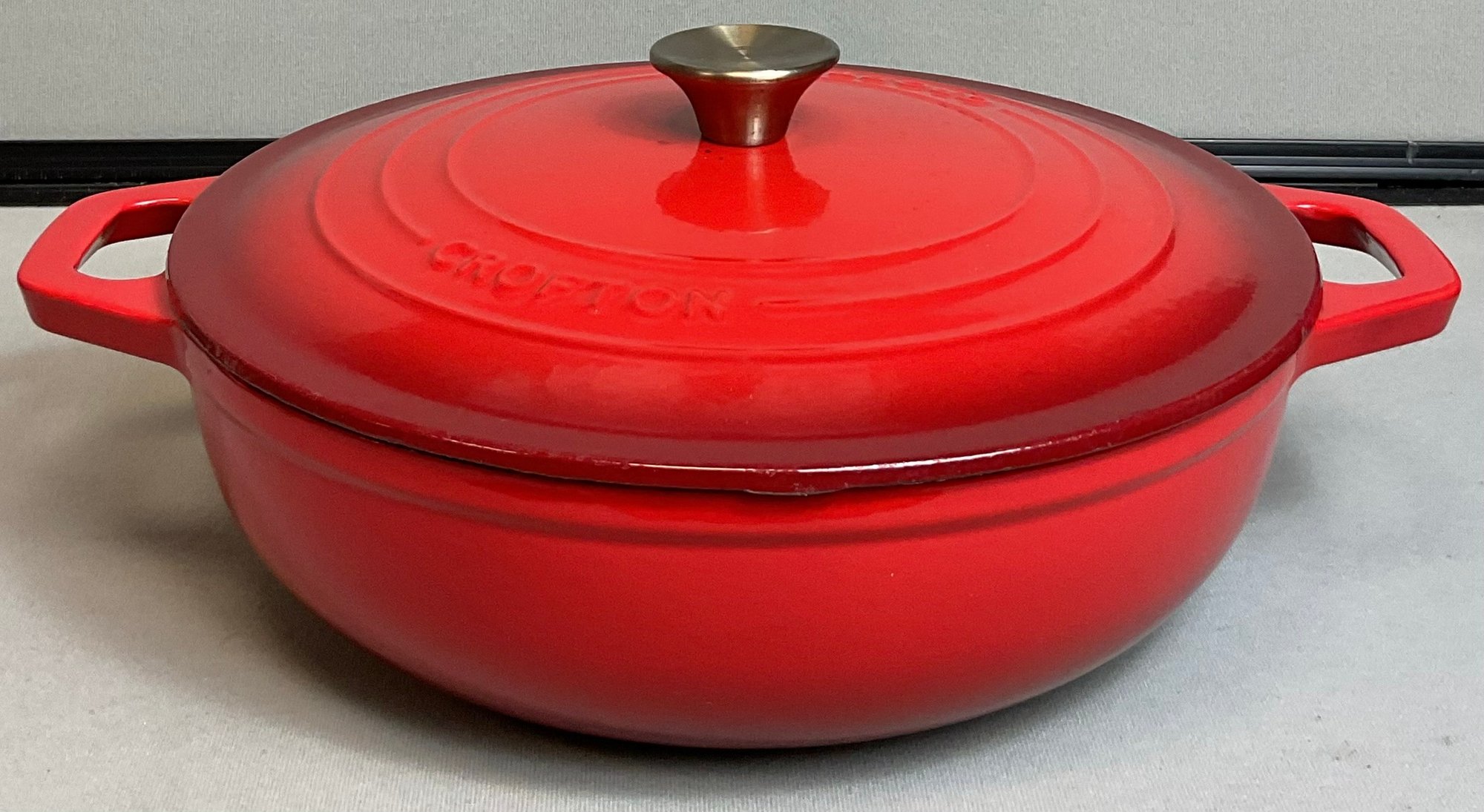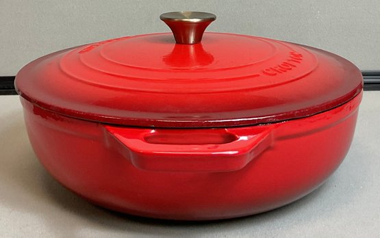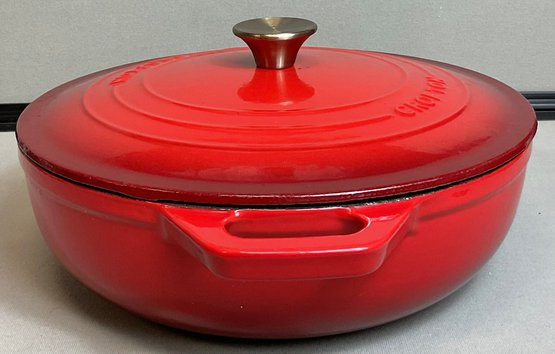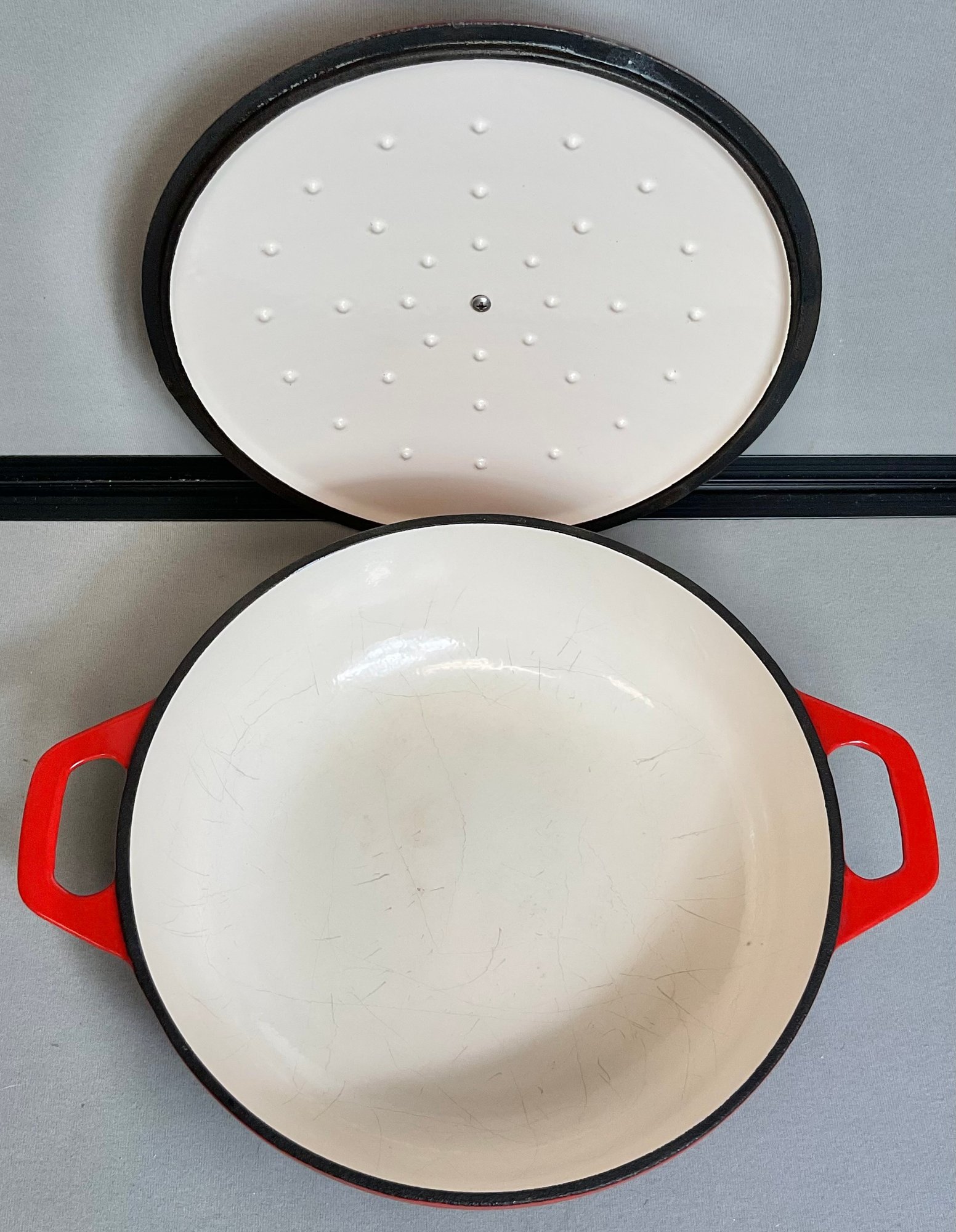 Crofton Red Enamel Cast Iron Braiser - 4.5” tall - 15.25” long - 12” wide - good used condition