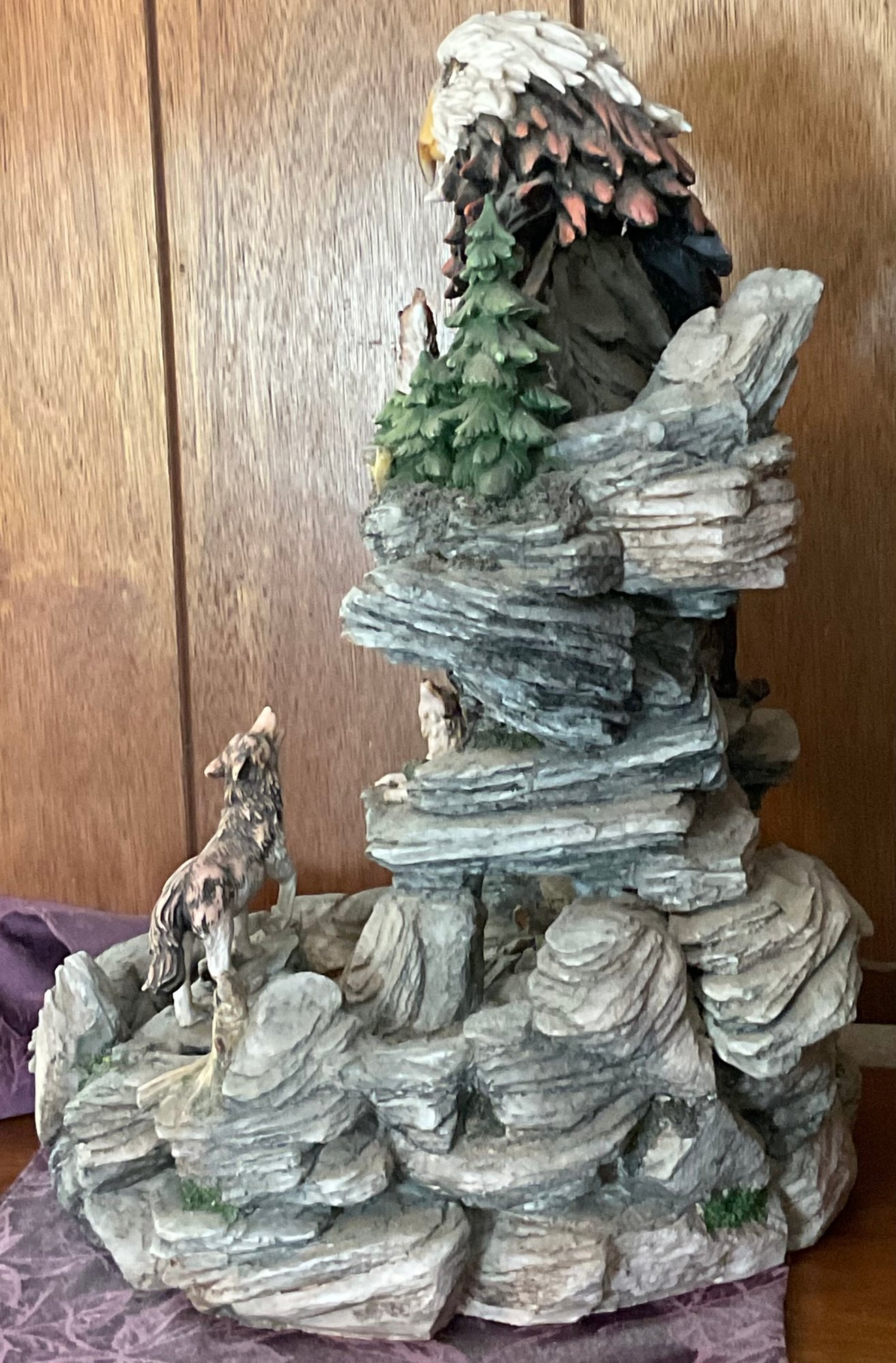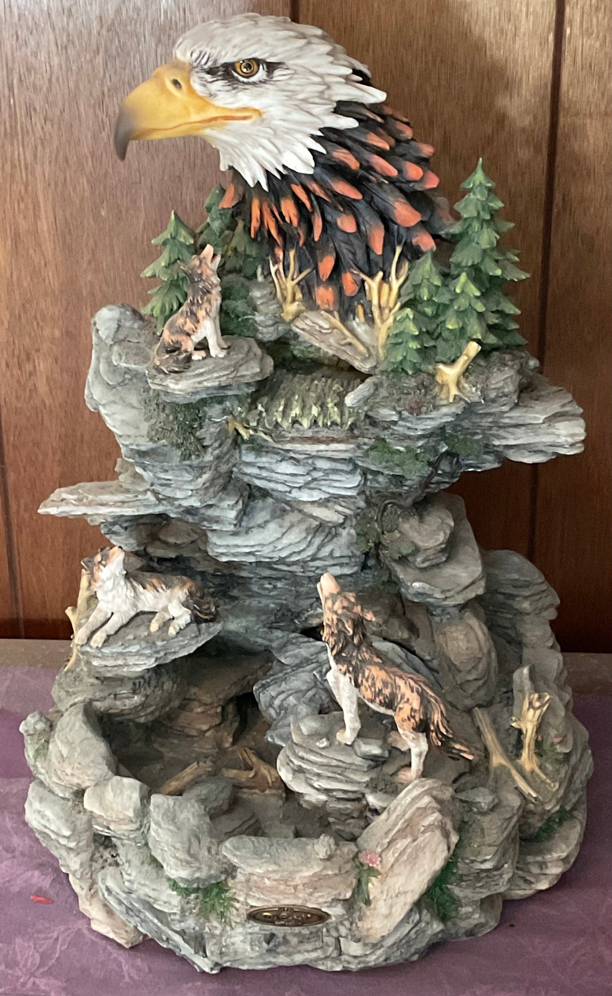 De Capoli Resin Eagle/ Wolf Fountain - works - 19.5” tall x 13.5” long x 13” wide - good used condition