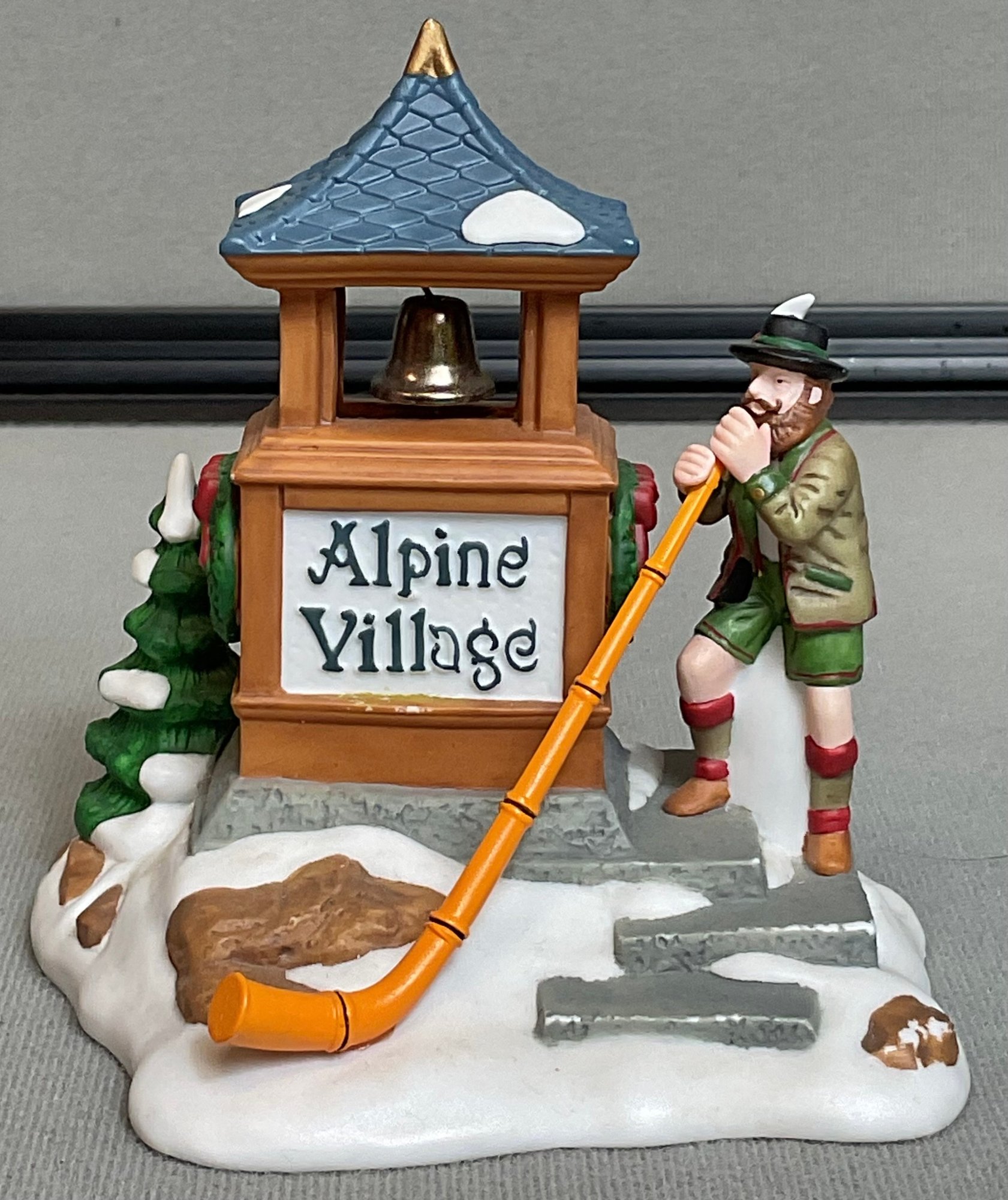 Dept. 56 - Alpine Village Alpenhorn Player - no box - no chips - 4.25” tall x 4” long x 3.25” wide - good used condition