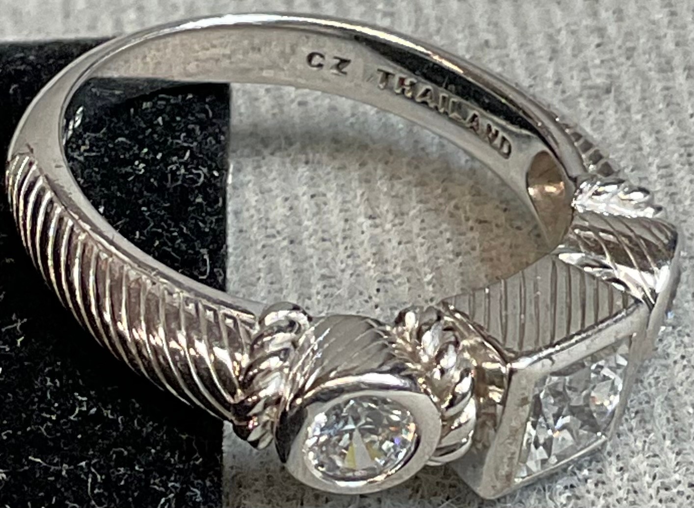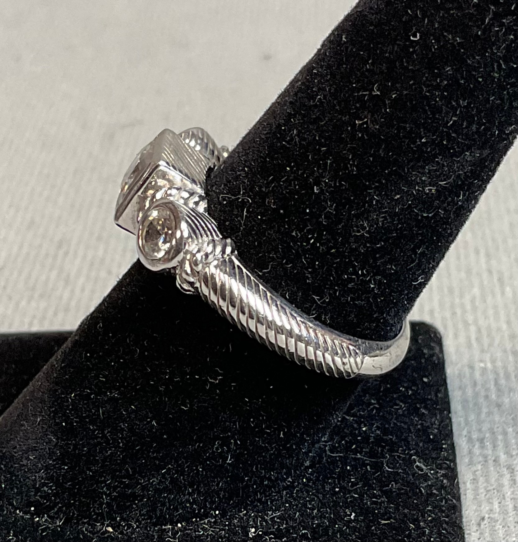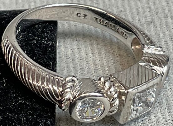 Designer Judith Ripka Sterling CZ Ring - size 9 - weighs 6.6 grams - good used condition