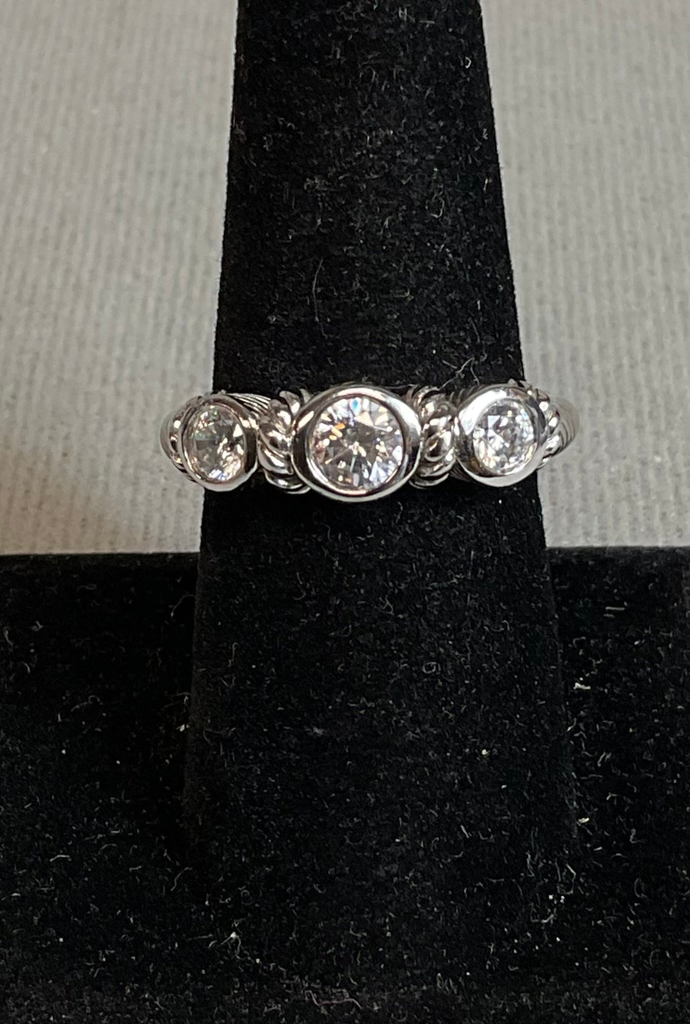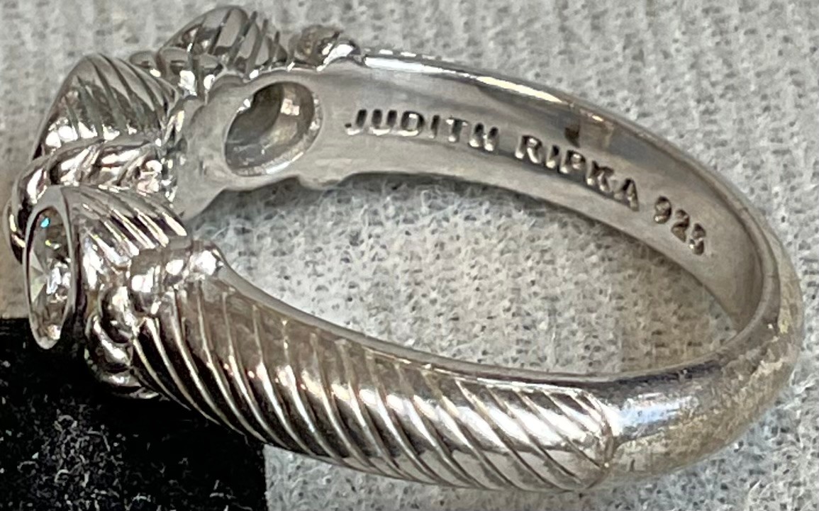 Designer Judith Ripka Sterling Ring - size 9 - weighs 6.6 grams - good used condition