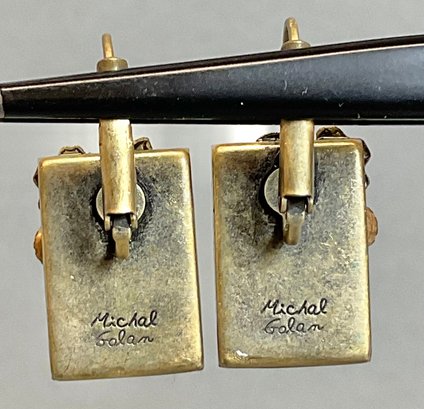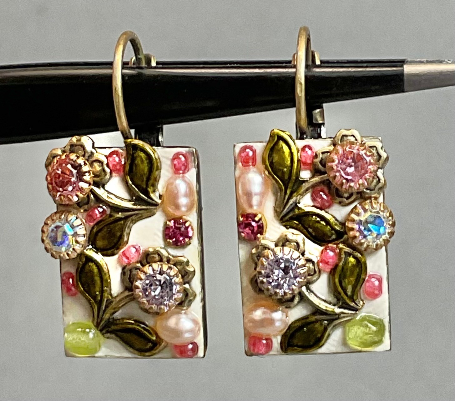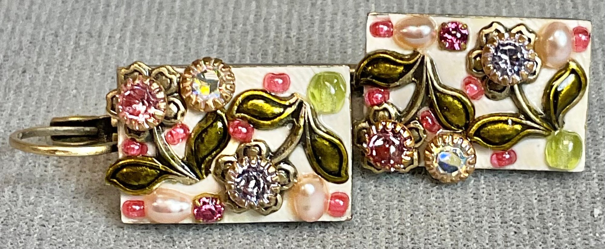 Designer Michal Golan Earrings - Multi Color Floral - 3/4” x 1/2” - good used condition