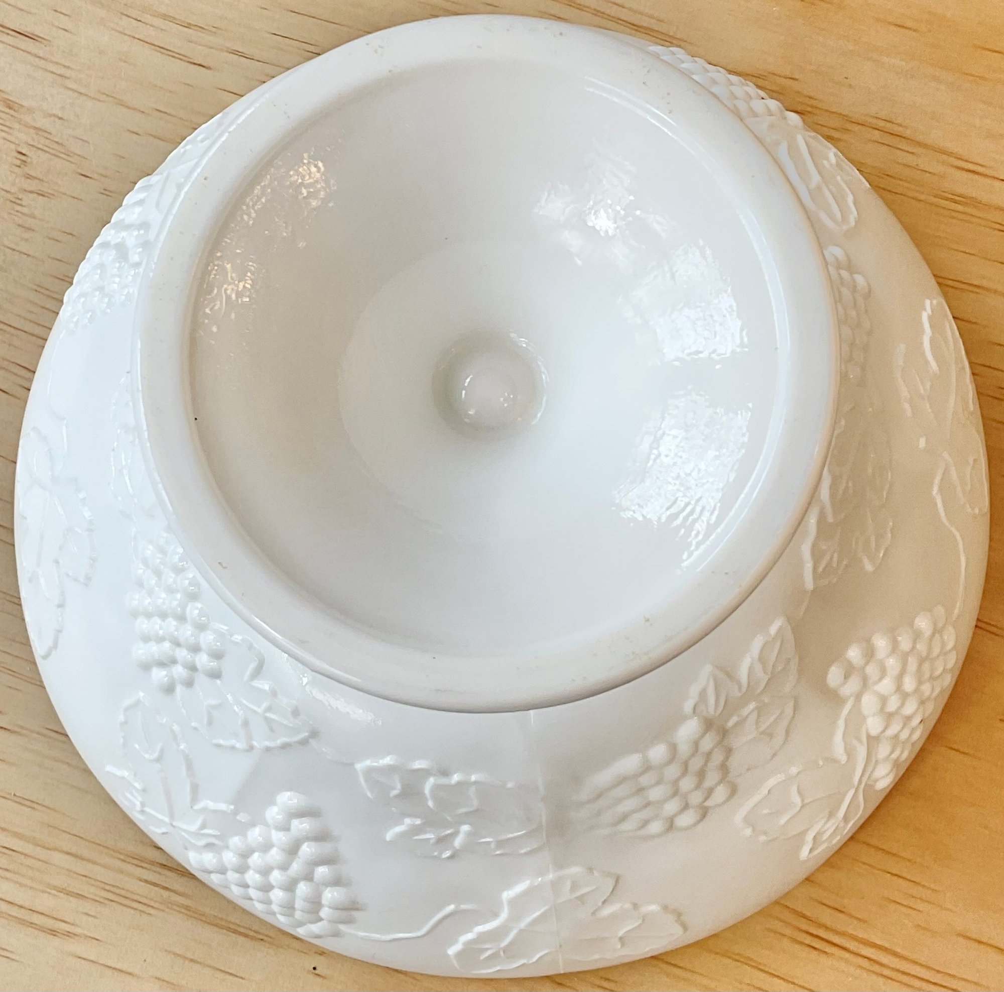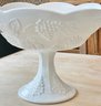 Indiana Colony Harvest Milk Glass Pedestal Fruit Bowl - no chips - 7.25” tall - 10” wide - good used condition