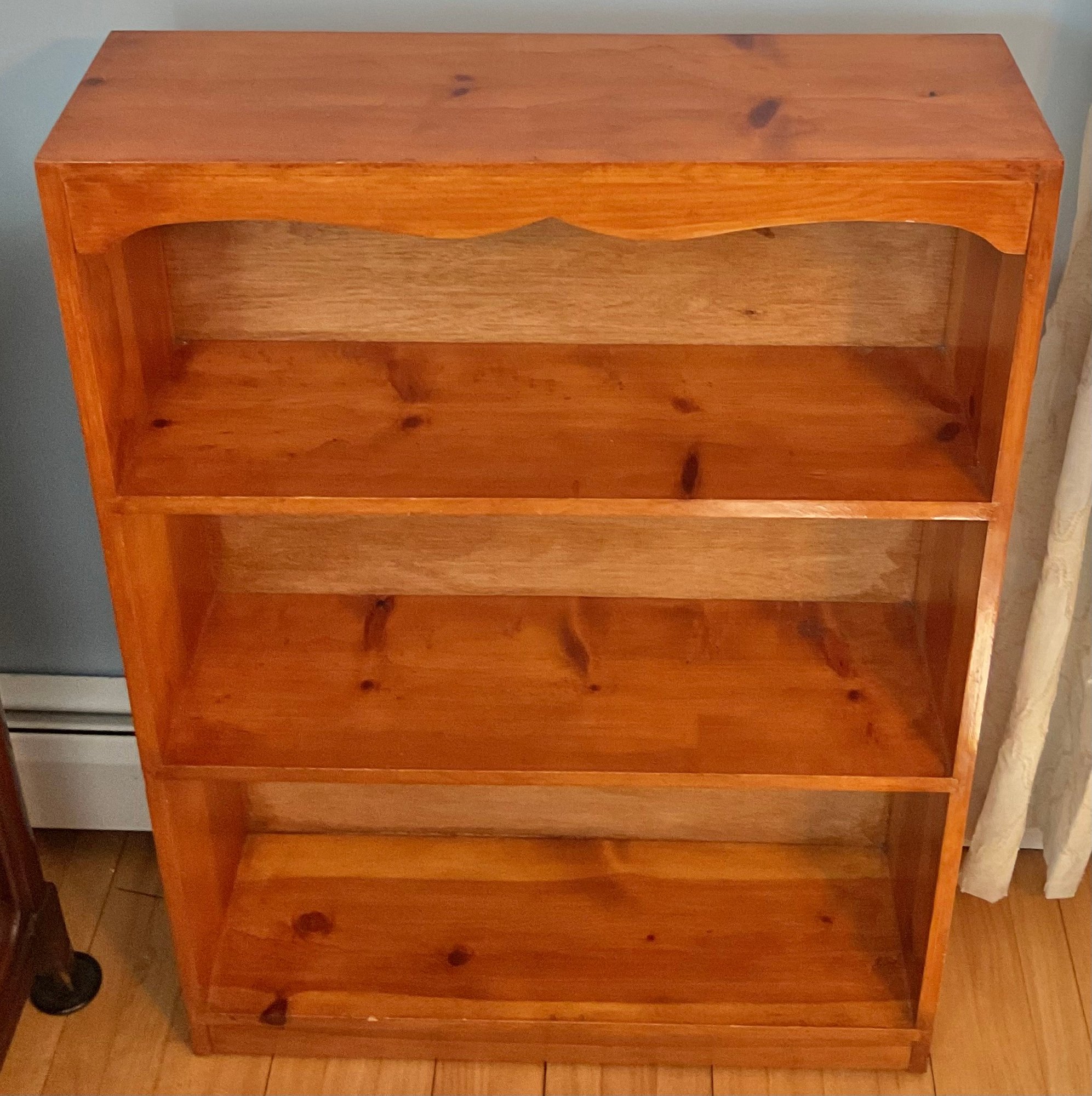 Pine 4 Shelf Bookcase - 42.25” tall x 30” long x 9” wide - good used condition