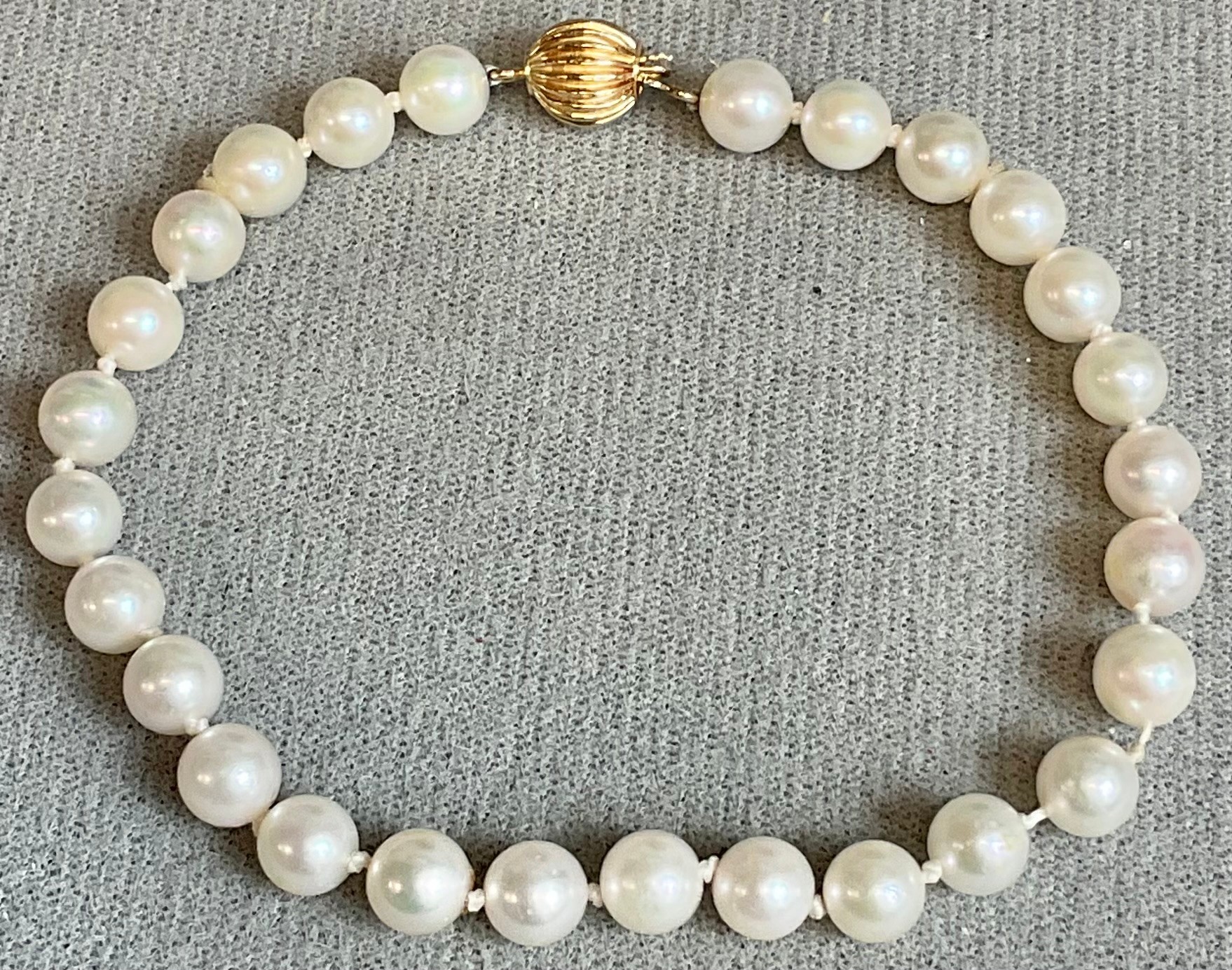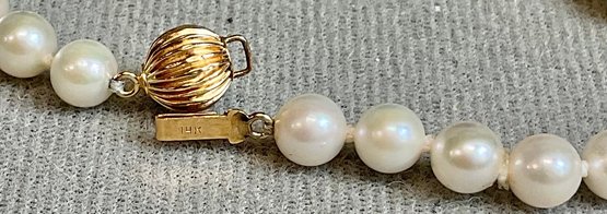 Pearl Bracelet 14k Gold Clasp - 8” long - pearls 5.5mm - good used condition