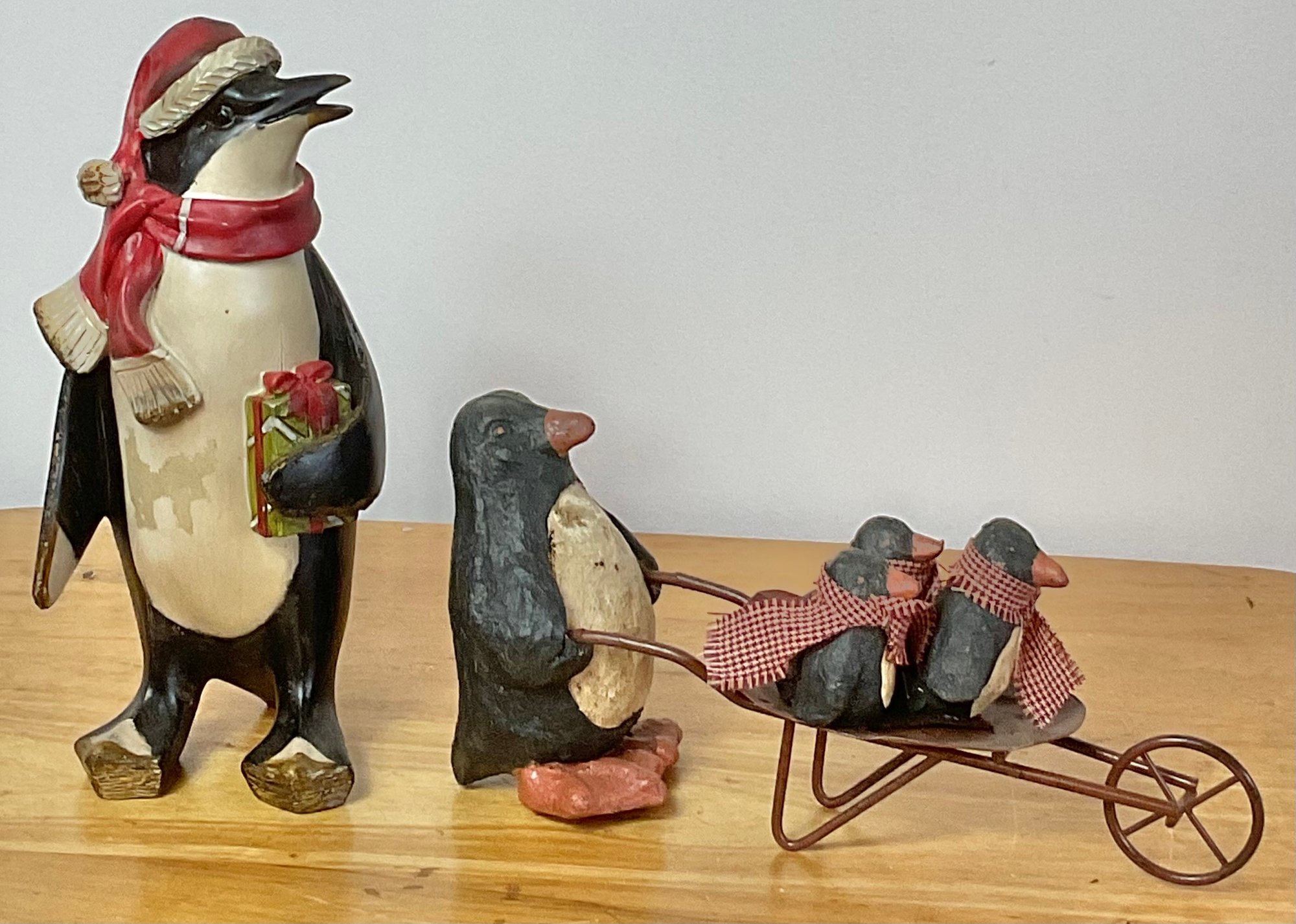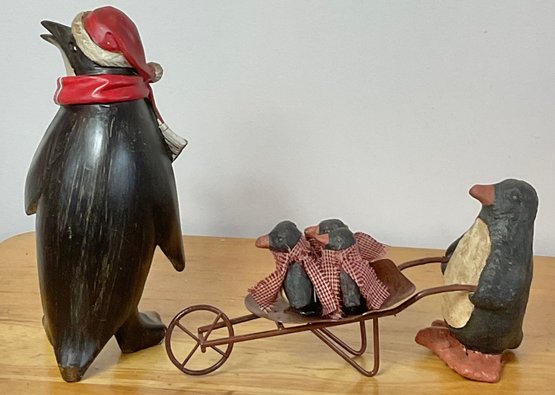 Penguin Figurines - resin - 4.5” & 8.5” tall - good used condition