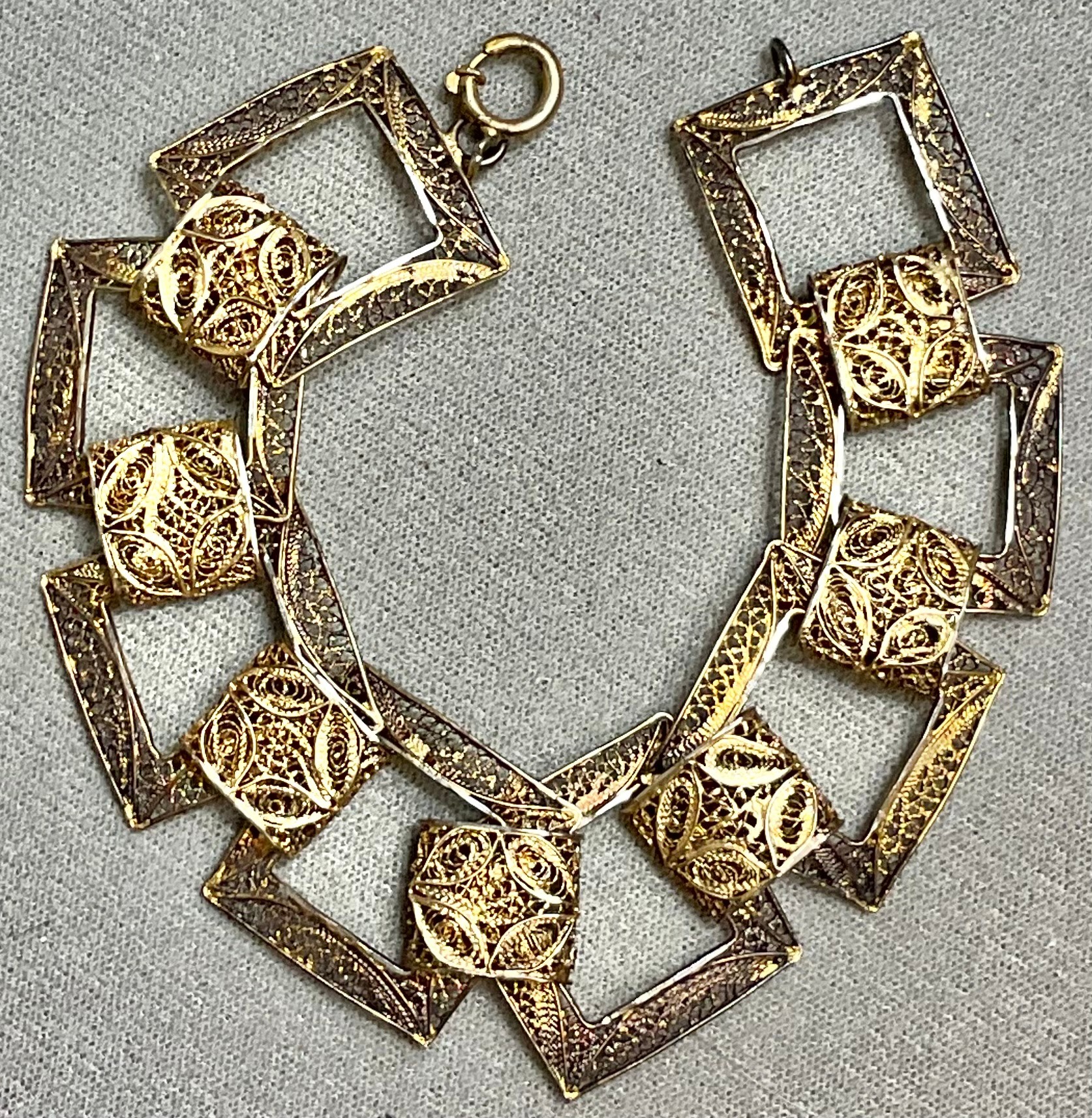 Pierced Sterling W/ Gold Vermeil Bracelet - 7.5” long - weighs 20.4 grams - good used condition