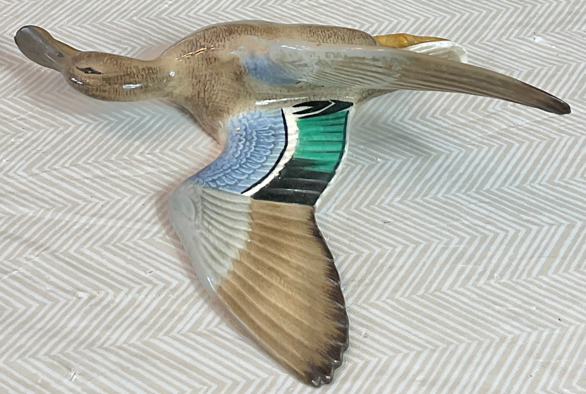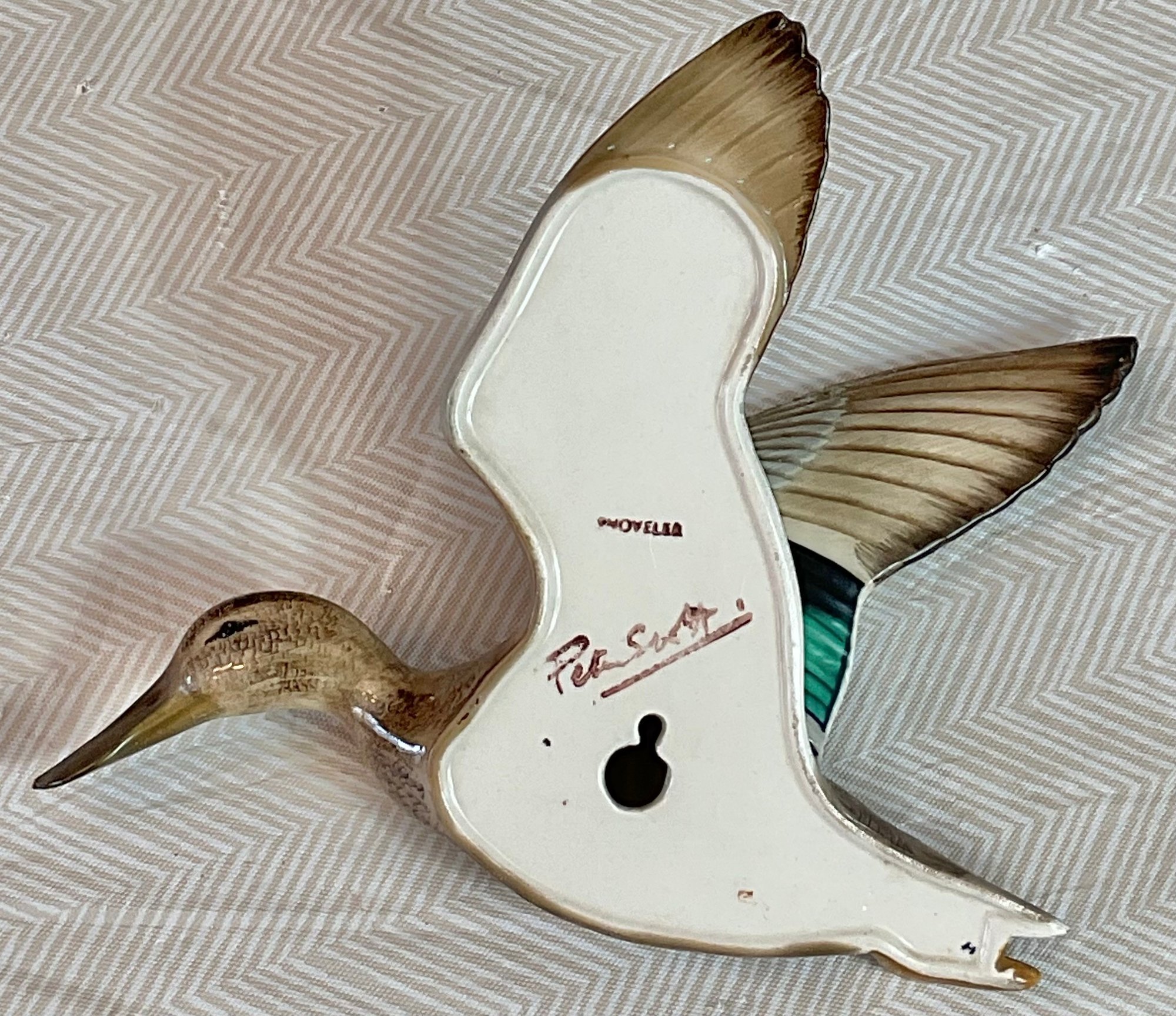 Peter Scott Ceramic Flying Duck Wall Plaque - chips on tail - 8.5” x 6.5” - good used condition