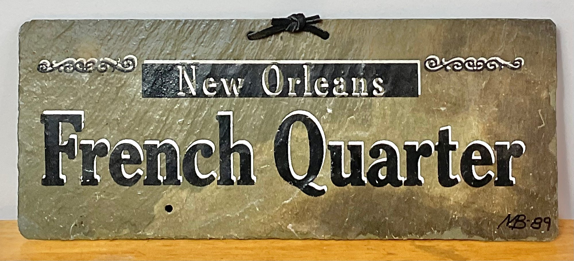 New Orleans French Quarter Sign On Antique Slate - 5.75” x 14” - good used condition