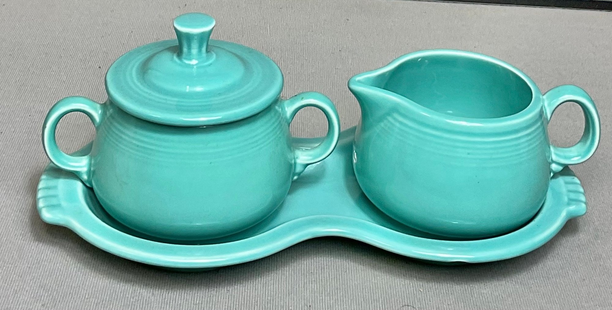 Fiesta Ware Sugar & Creamer Tray Set - Turquoise - no chips - good used condition