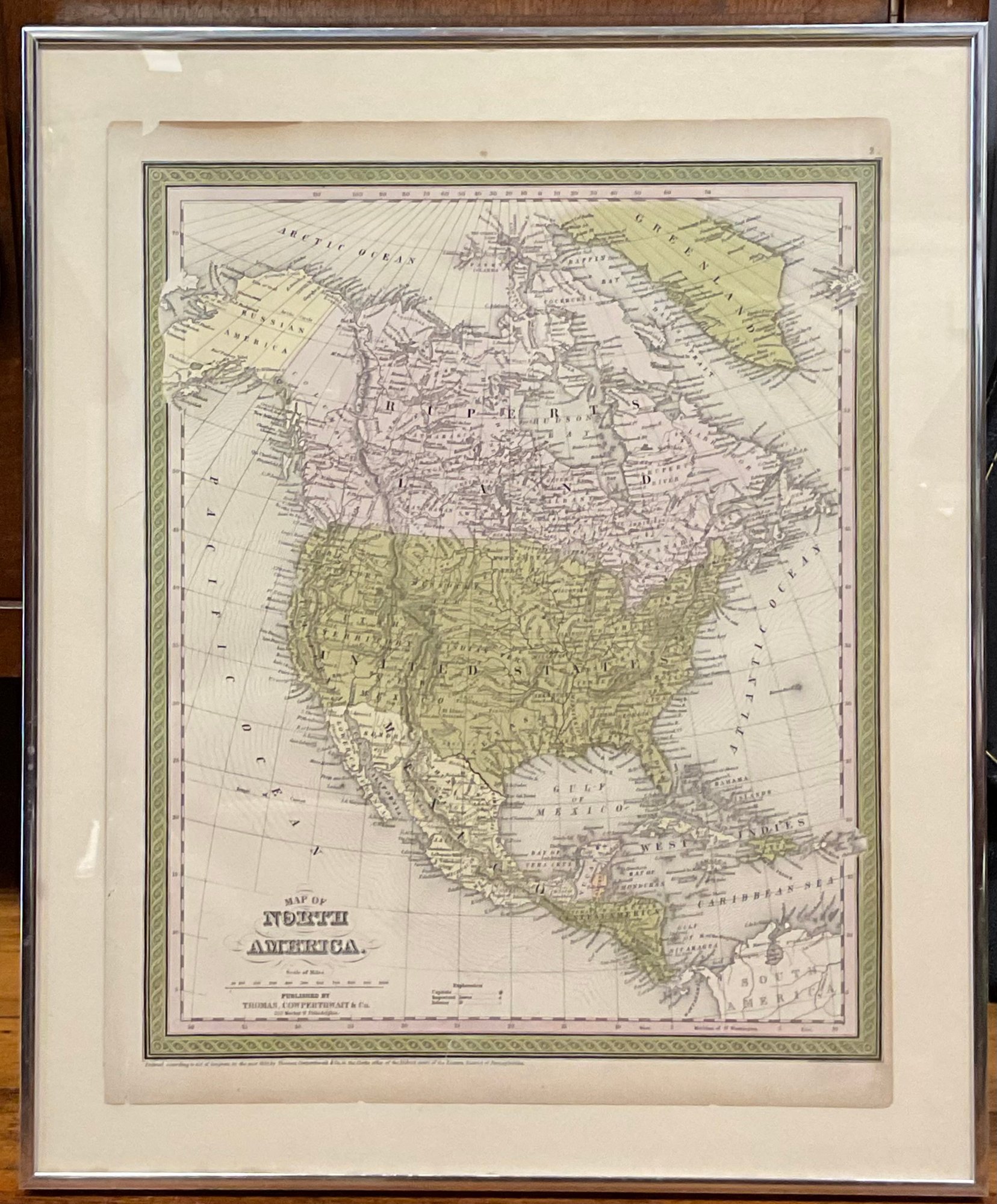 Framed 1850 Map Of North America - 20.25” x 16.75” - good used condition