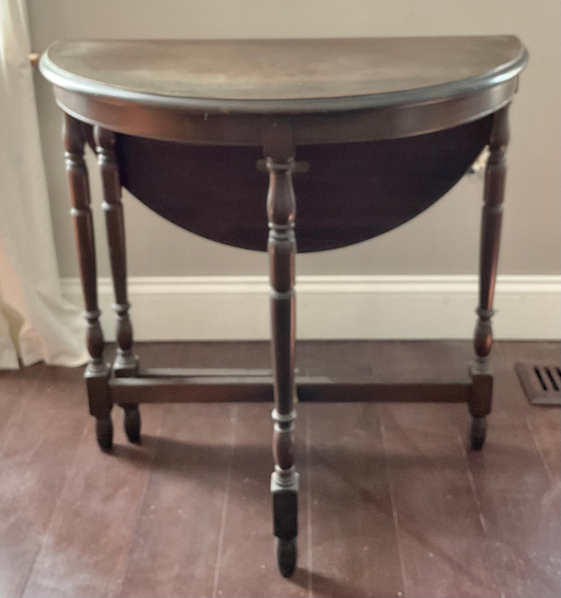 Half Round To Round Gate Leg Table - 26” tall x 26” round - one half needs refinished - good used condition