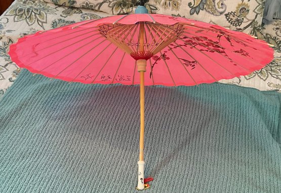 Hand Painted Japanese Parasol - 32” wide - 23” long when closed - good used condition