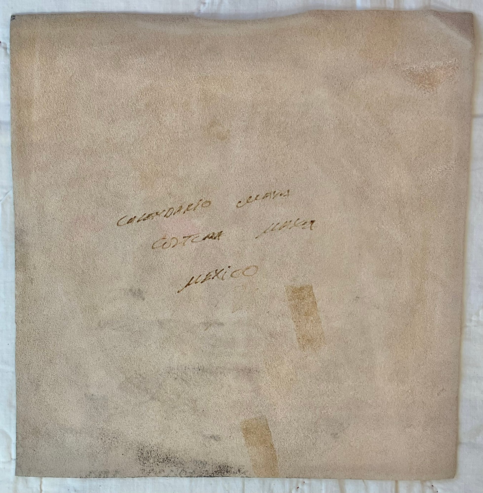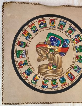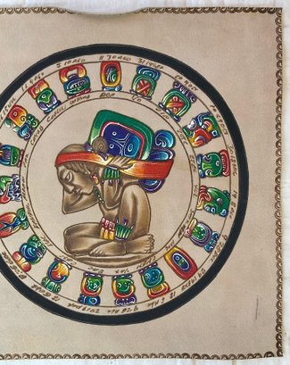 Hand Painted Mayan Calendar On Suede/Leather - 11.75” x 115/8” - good used condition